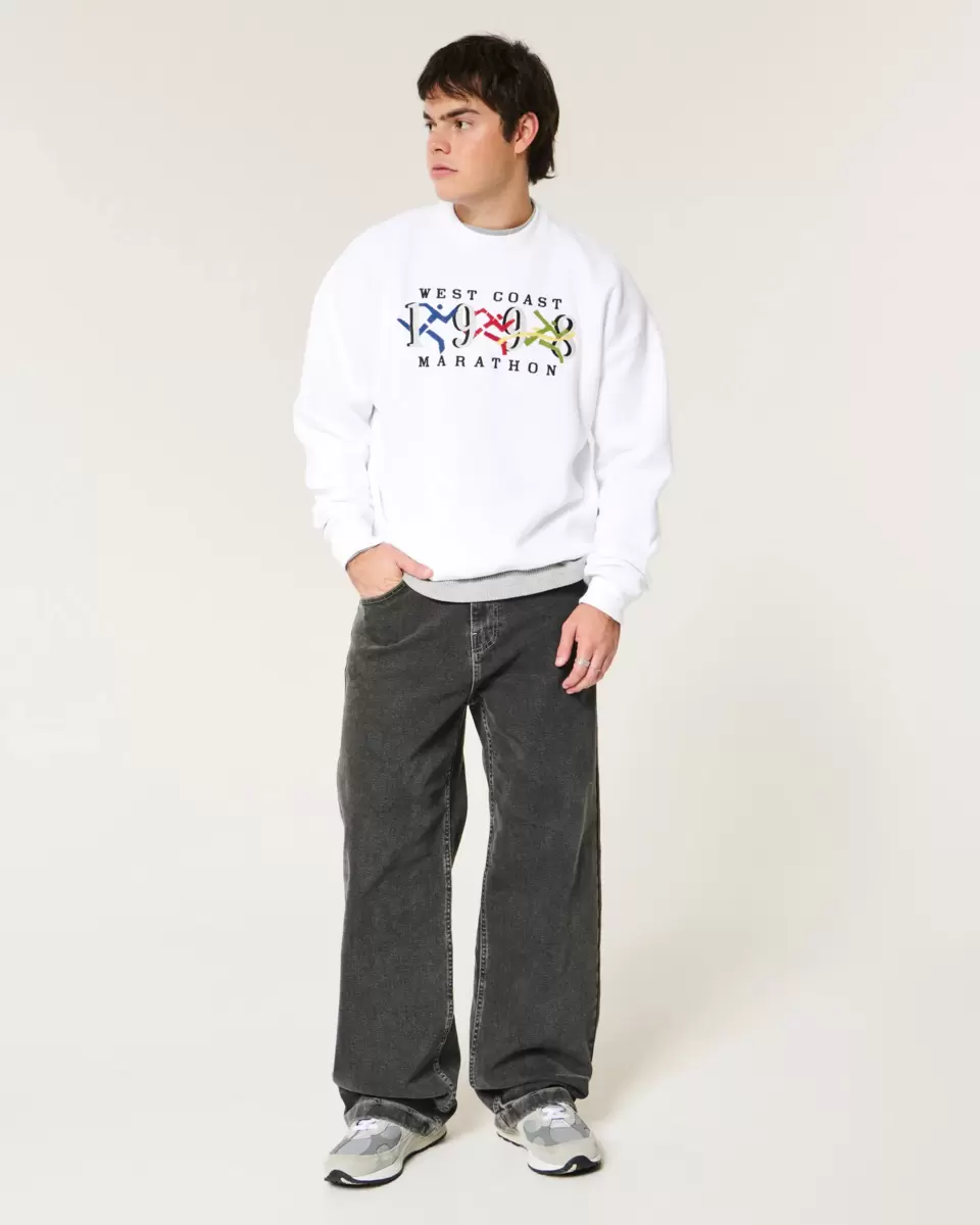 A super soft fleece sweatshirt featuring West Coast Marathon 1998 graphic embroidery. Crew neckline, long sleeves. Boxy Fit. Imported.
