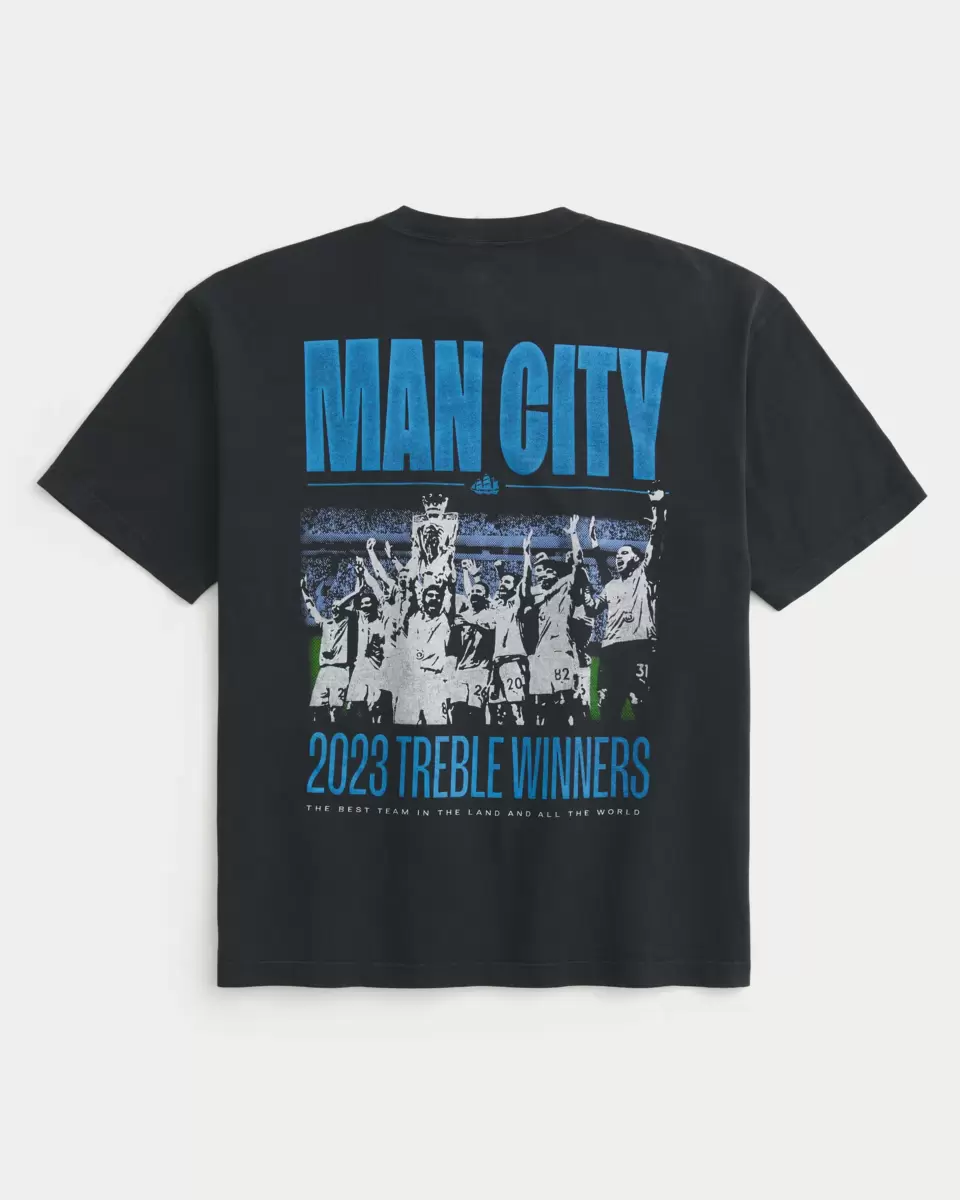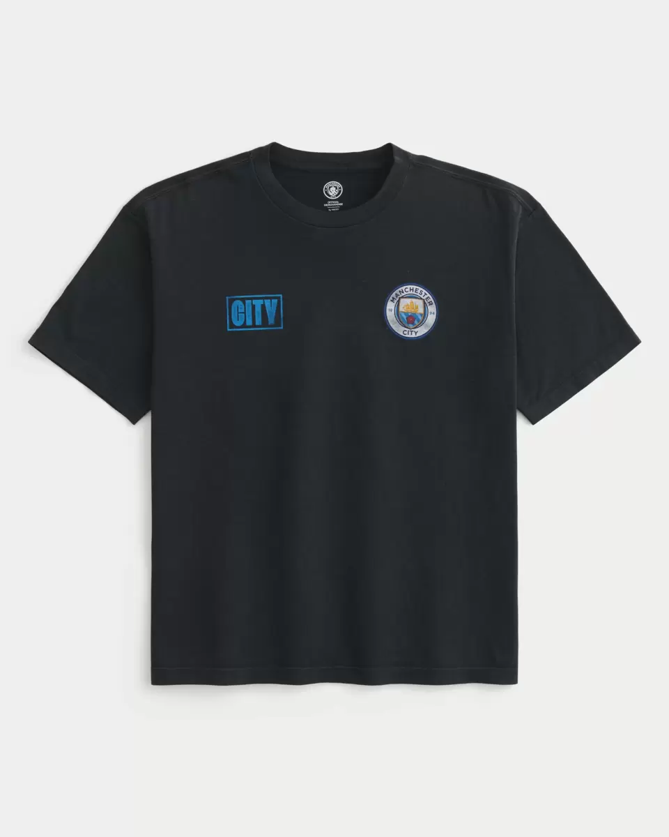 A super soft 100% cotton tee featuring official licensed Manchester City print graphics at the front and back. Crew neckline, short sleeves. Imported.