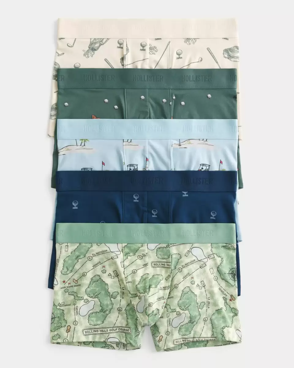 A 5-pack of classic length boxer briefs designed with comfortable, stretch knit fabric and contour pouch for support. Soft elastic waistband with logo details. Golf graphic patterns. Imported.