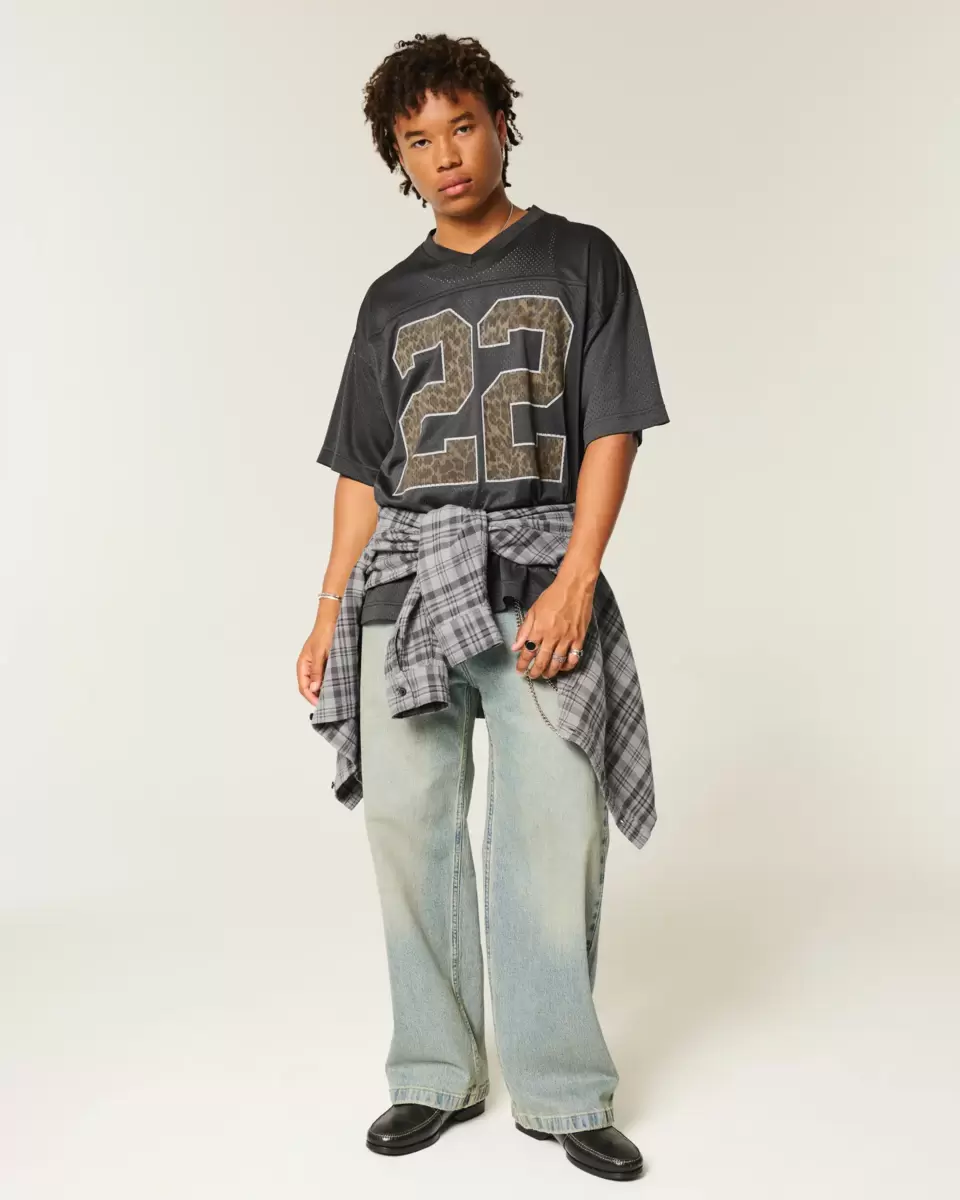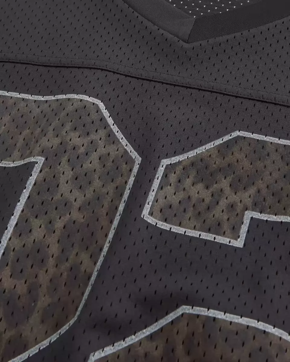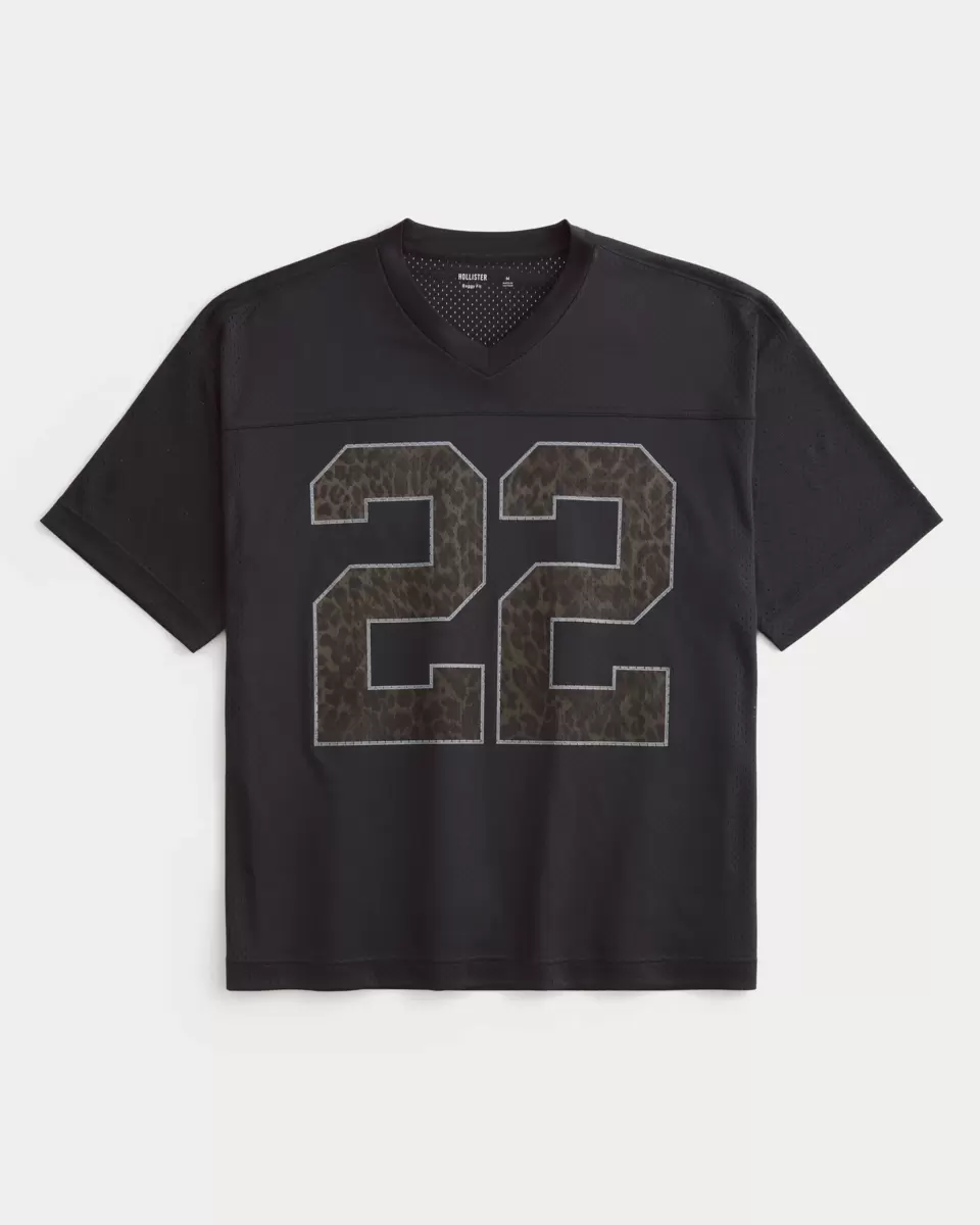 This classic football jersey features a classic leopard-print filled number graphic. V-neckline, short sleeves, soft mesh fabric. Baggy Fit. Imported.