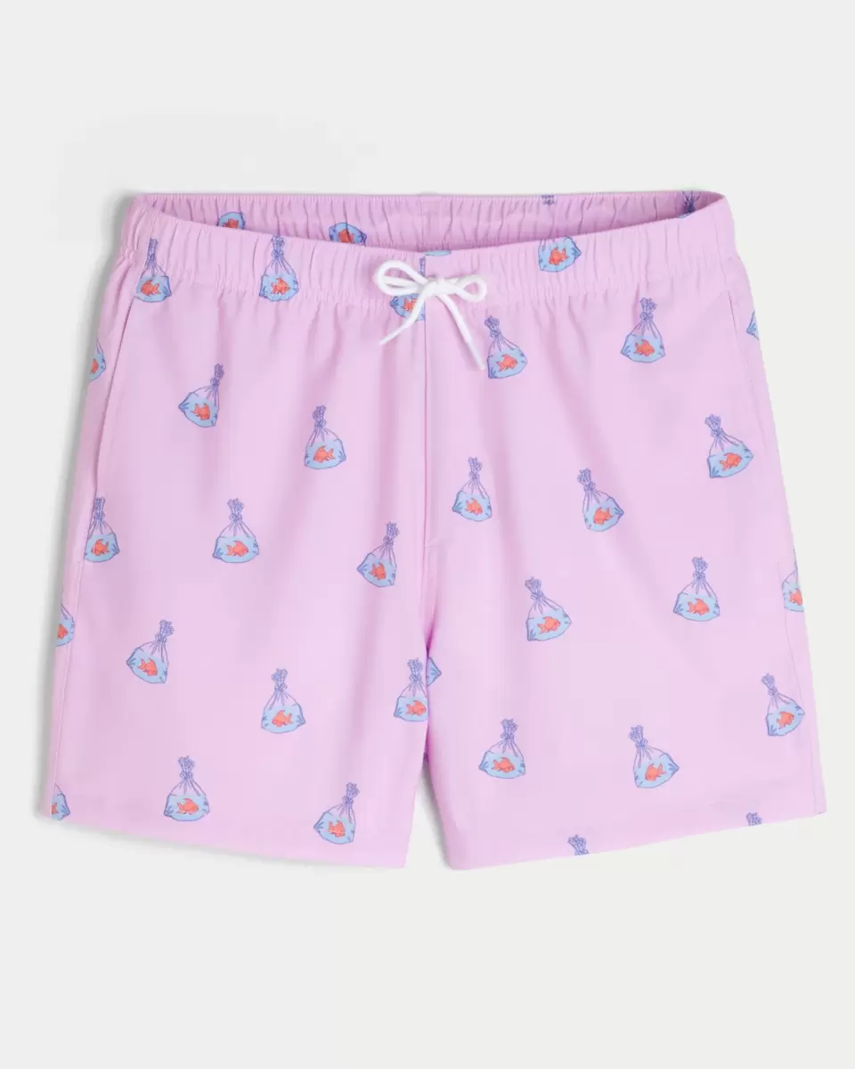 Shorter-length swim trunks that hit mid-thigh. Featuring comfortable 4-way stretch swim fabric and a 5.5″ inseam. Pockets. Imported.