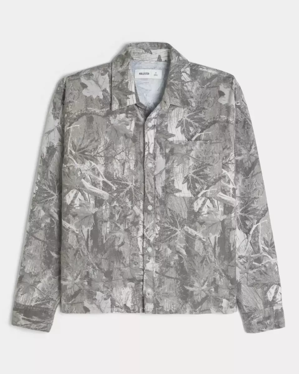 A classic shirt in soft cotton flannel fabric, featuring an all-over camo pattern. Full button closure, long sleeves, left chest pocket, collar. Boxy Fit.