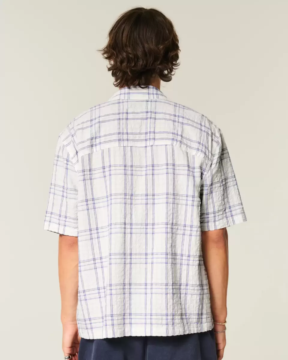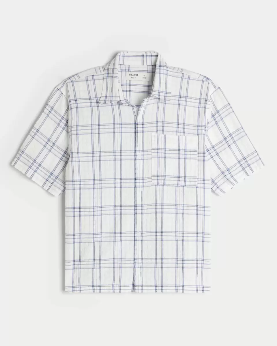 This classic short-sleeve shirt has a full button closure and left chest pocket. Short sleeves, collar. Boxy Fit. Imported.