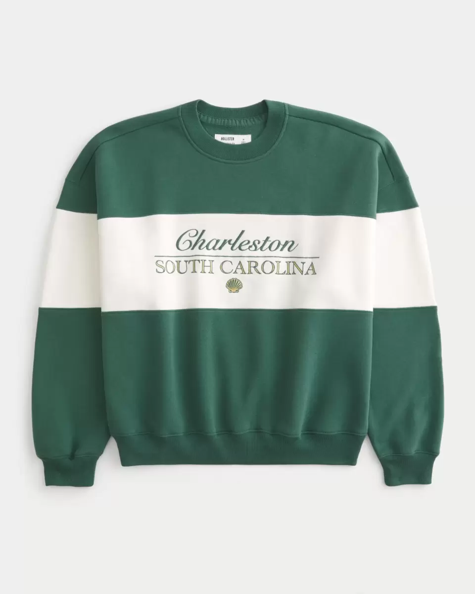 This super soft fleece sweatshirt features Charleston South Carolina graphic embroidery. Crew neckline, long sleeves. Baggy Cinch Fit. Imported.