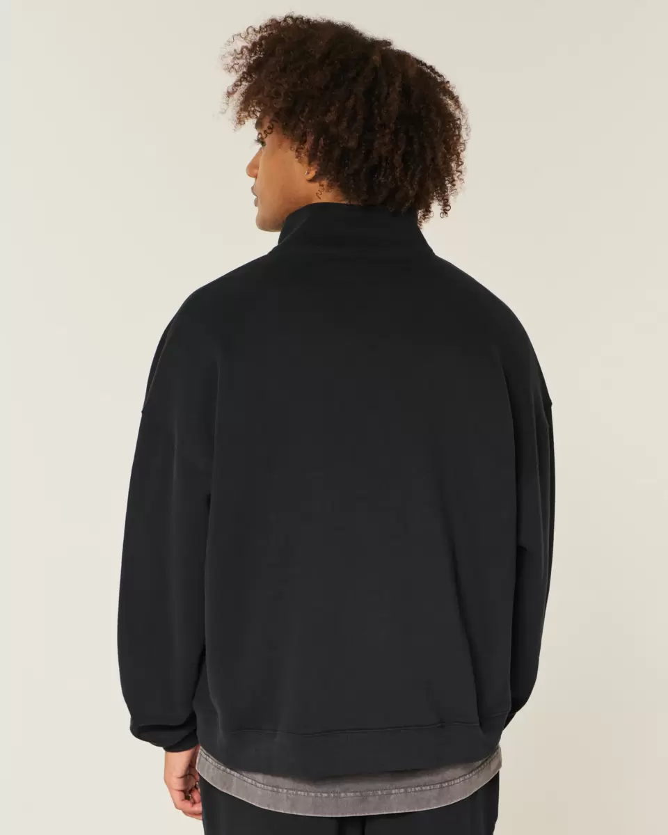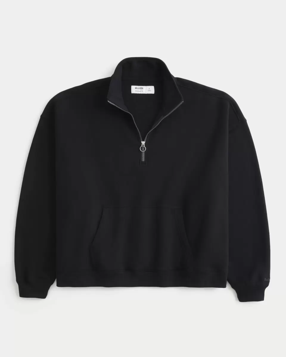 A super soft fleece sweatshirt with a mock-neck collar, quarter-zip closure and front pouch pocket. Long sleeves, micro logo embroidery detail at left sleeve. Rectangle Fit. Imported.