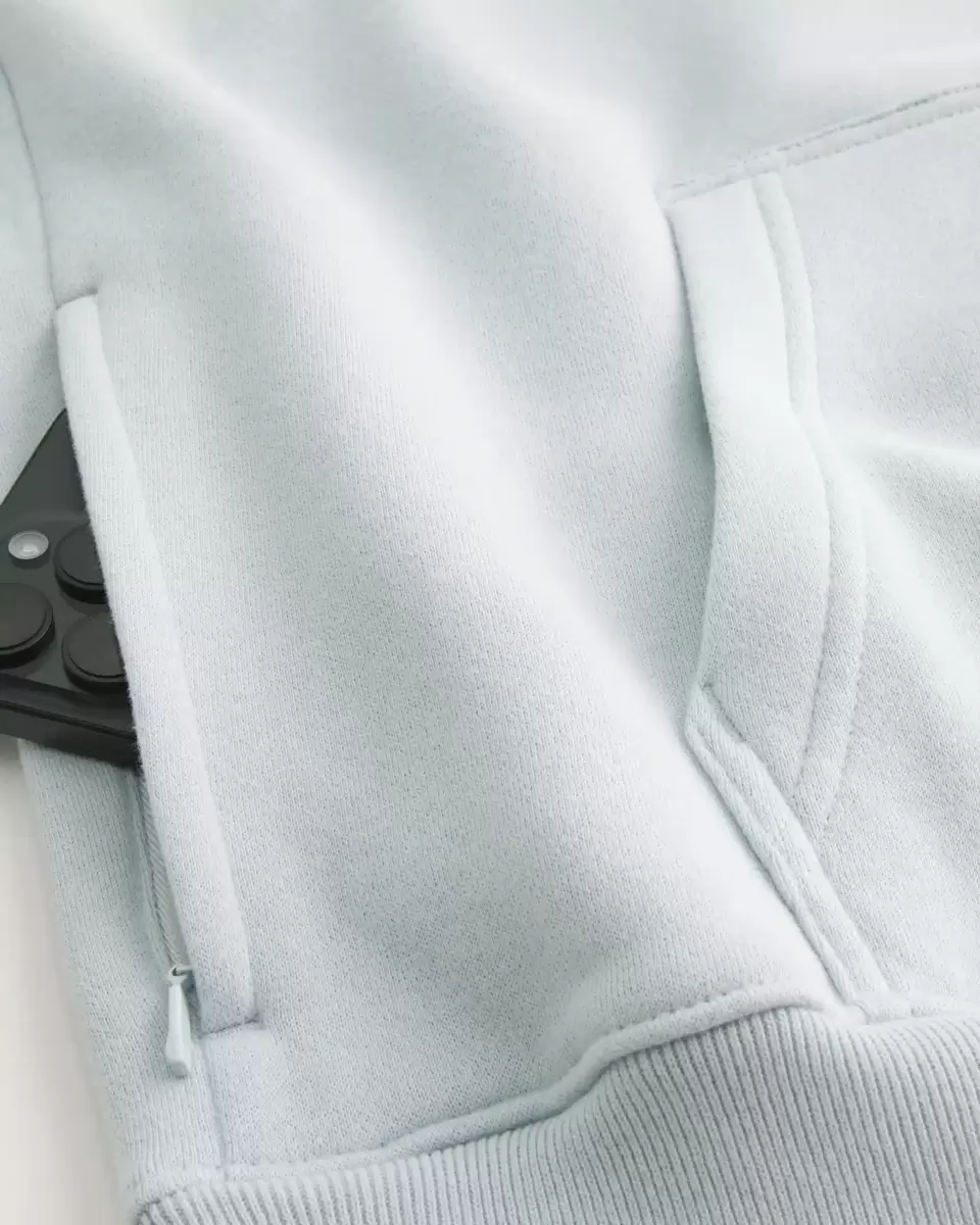 A super soft fleece hoodie with long sleeves and a front pouch pocket. Hood. Boxy Fit. Imported.