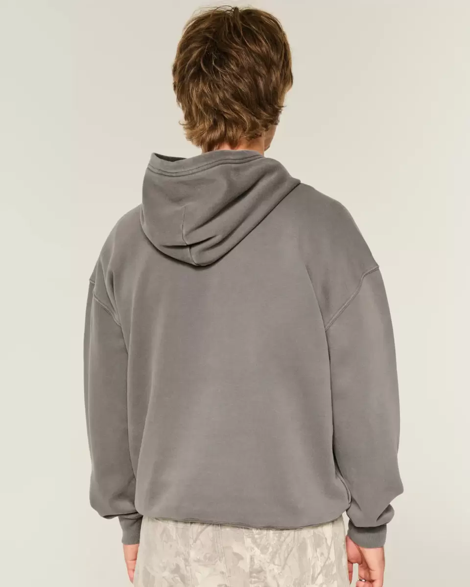 A super soft fleece hoodie with long sleeves and a front pouch pocket. Hood. Boxy Fit. Imported.