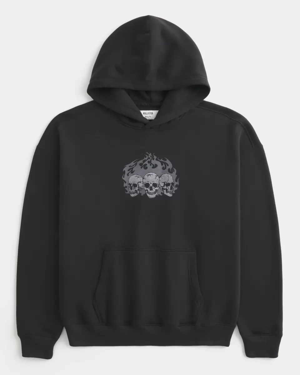 This super soft fleece hoodie features a skull print graphic and front pouch pocket. Hood, long sleeves. Imported.