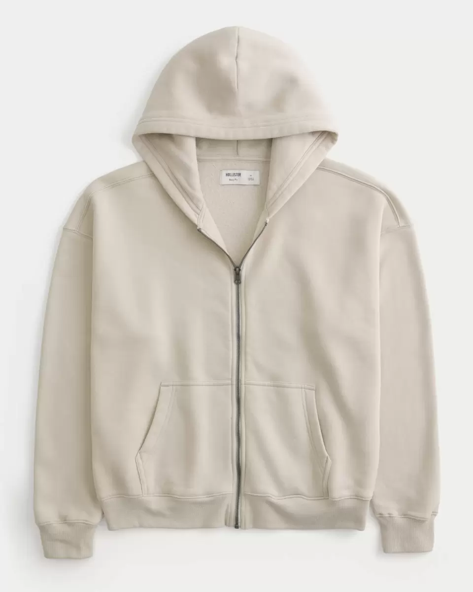 This super soft fleece hoodie has a full zip-up closure and front pockets. Long sleeves, hood. Boxy Fit. Imported.