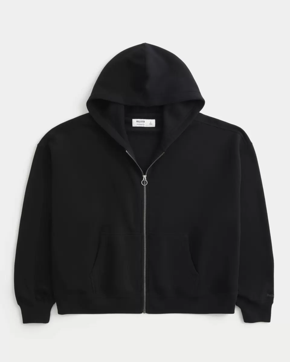 A super soft hoodie with long sleeves, front pockets and a full zip-up closure in our new Rectangle Fit.