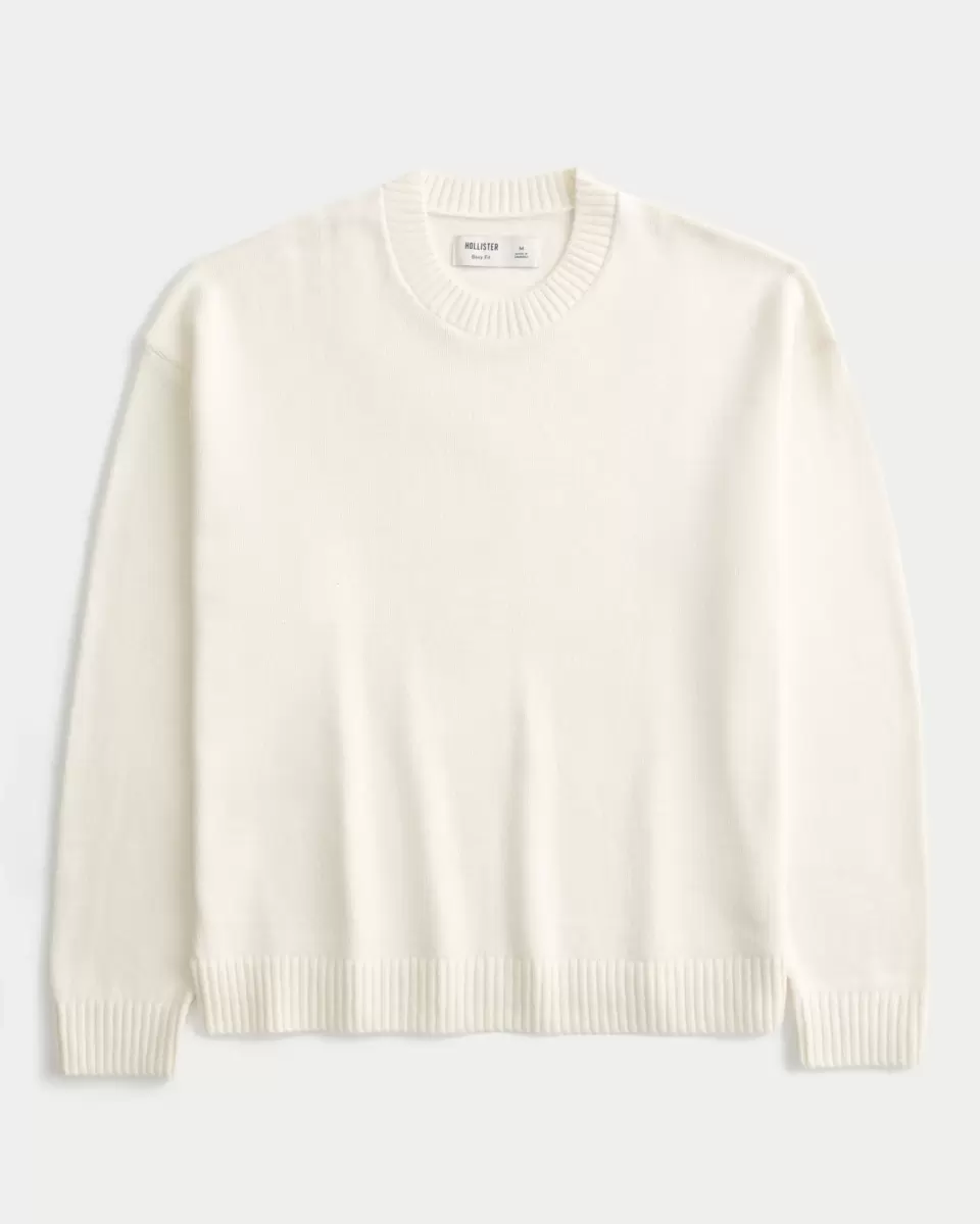 This super soft and comfortable sweater has a crew neckline, long sleeves and ribbed trims. Boxy Fit. Imported.