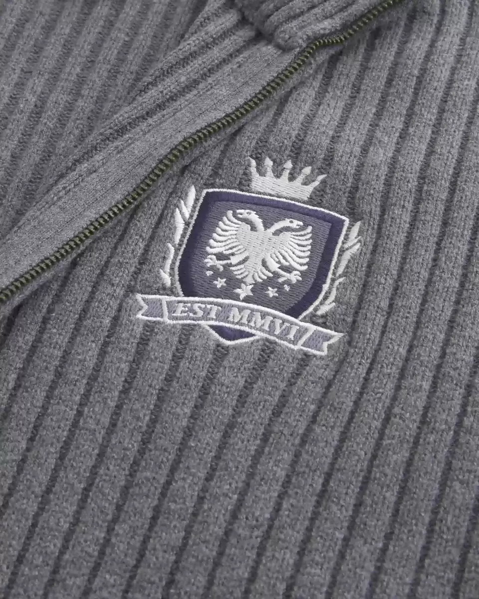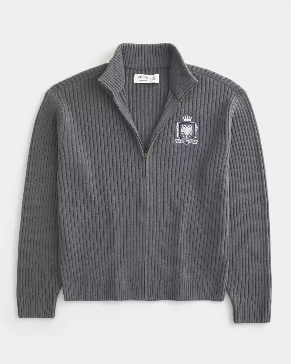 This super soft sweater features a mock-neck collar, full zip-up closure and graphic embroidery at the left chest. Ribbed trims, long sleeves. Relaxed Fit. Imported.
