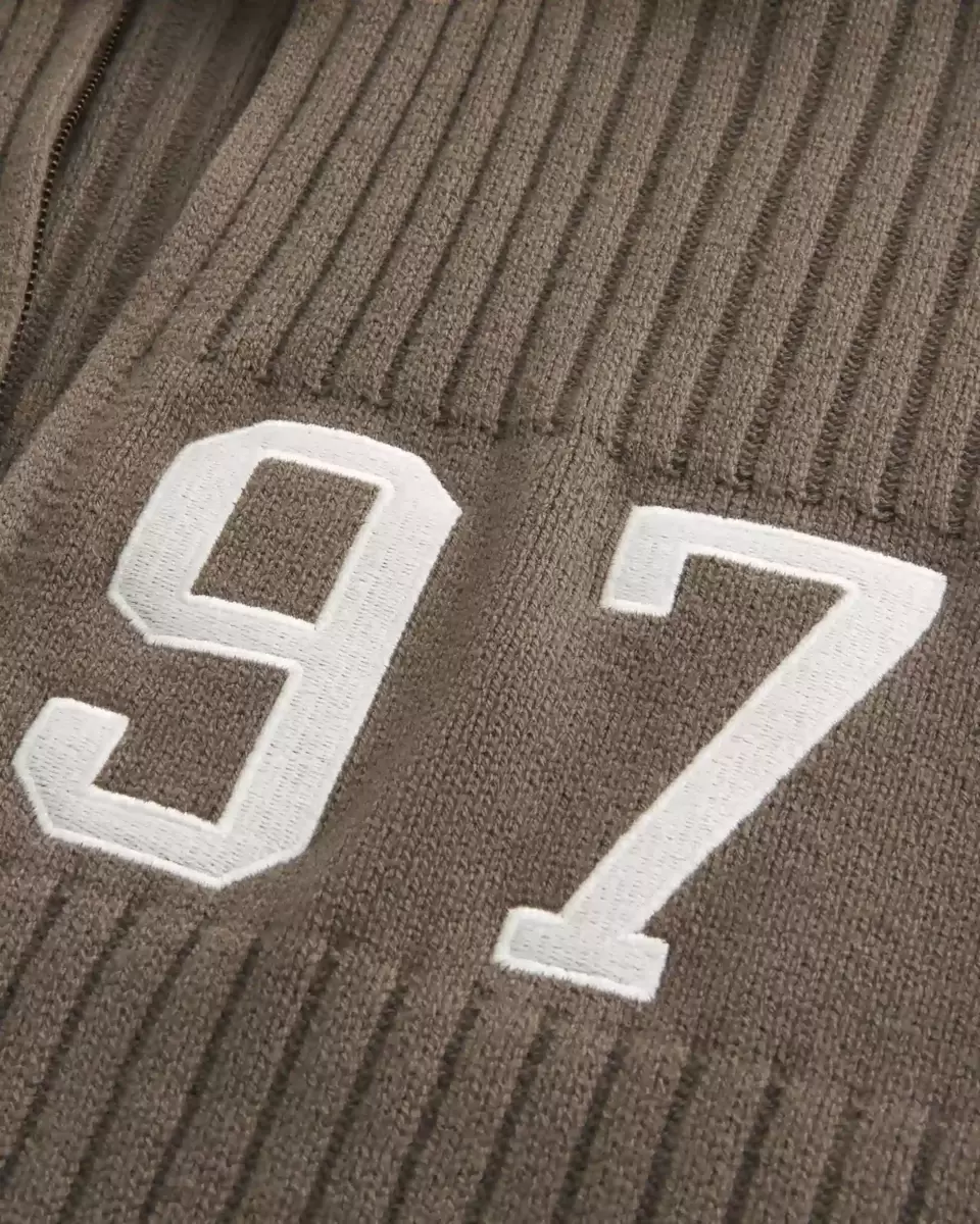This super soft sweater features a mock-neck collar, full zip-up closure and number graphic embroidery. Ribbed trims, long sleeves. Relaxed Fit.