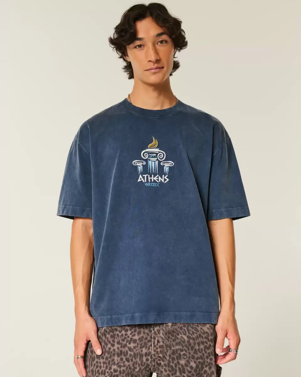 This super soft tee is made with heavyweight 100% cotton and features Athens Greece graphic embroidery. Crew neckline, short sleeves. Boxy Fit.