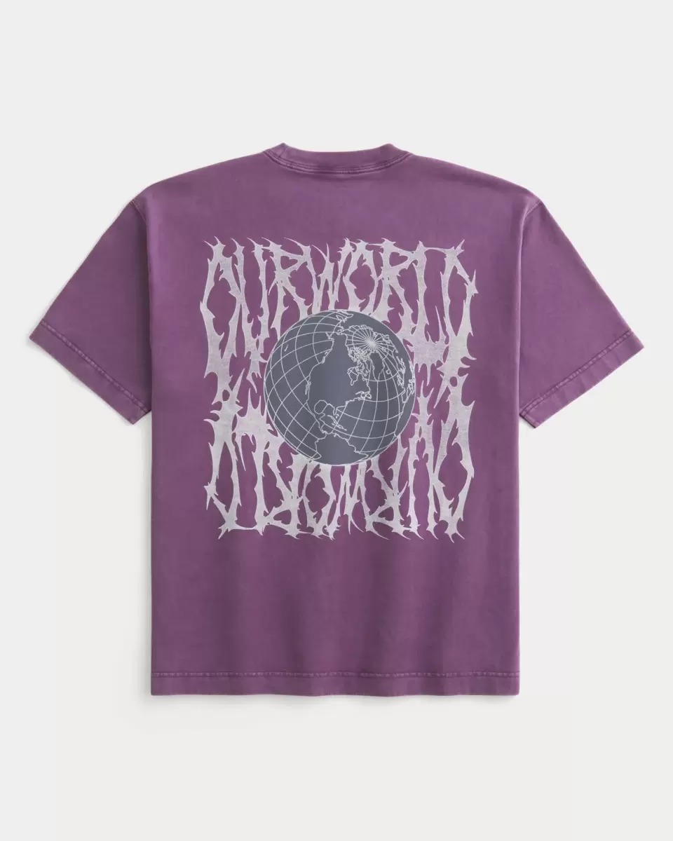 A super soft, heavyweight 100% cotton tee featuring Our World print graphics at the left chest and back. Crew neckline, short sleeves. Boxy Fit.