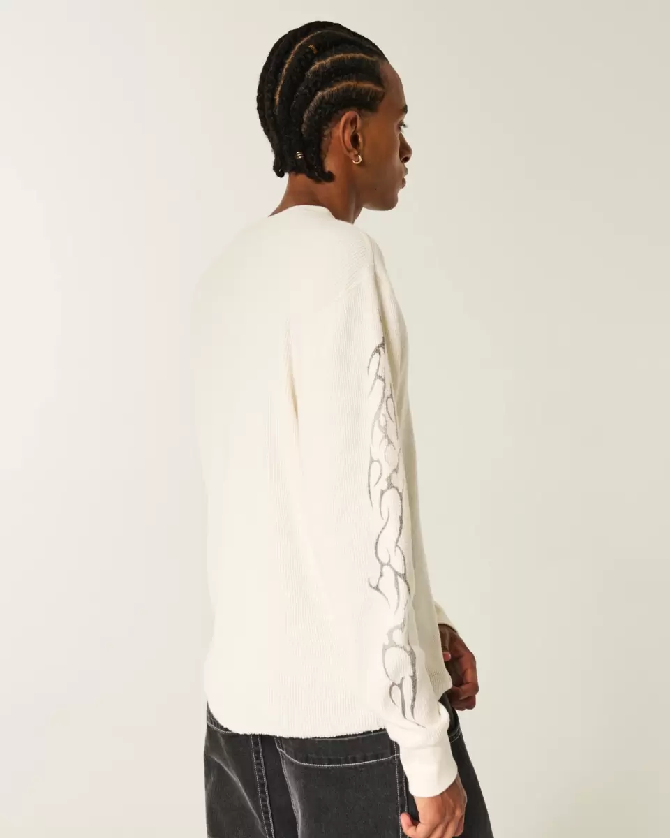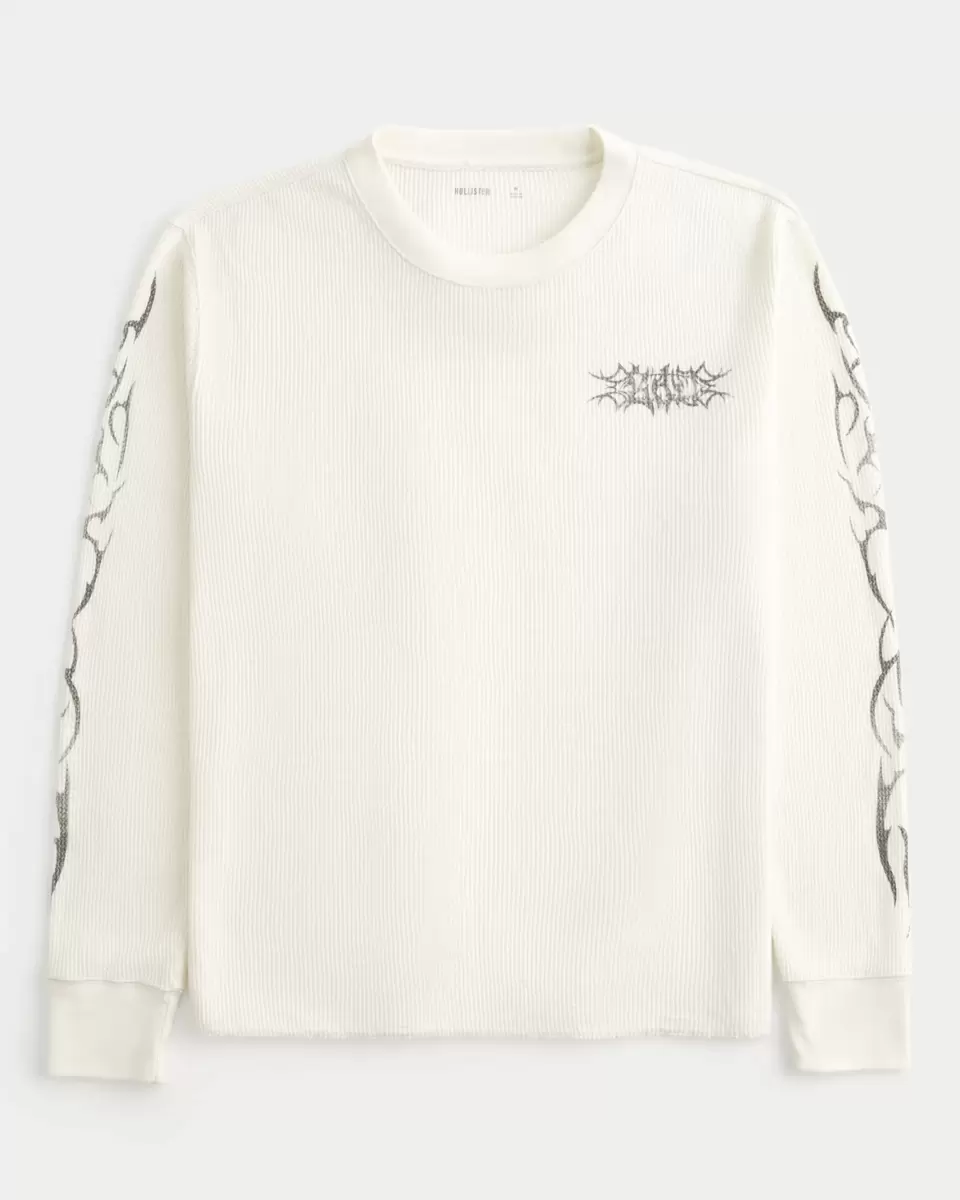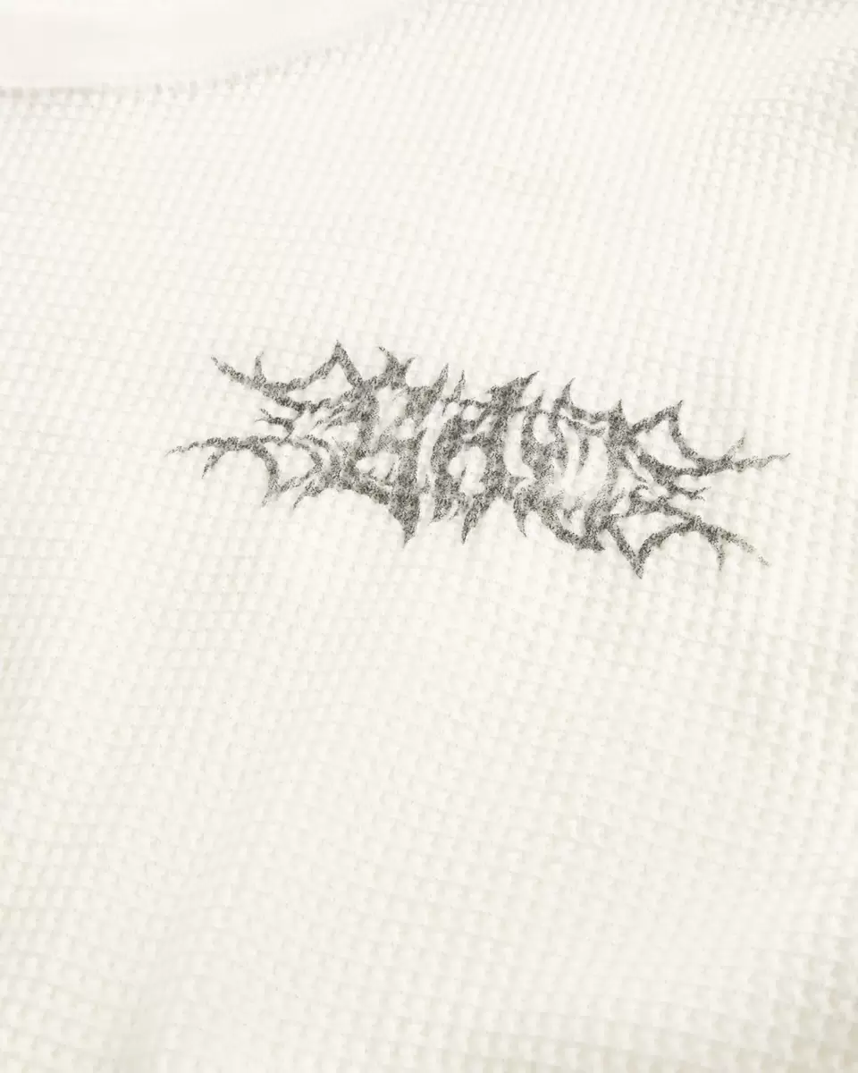 A long-sleeve Y2K-inspired thermal shirt in super soft waffle fabric. Crew neckline, graffiti-style print graphics at the sleeves and left chest. Imported.