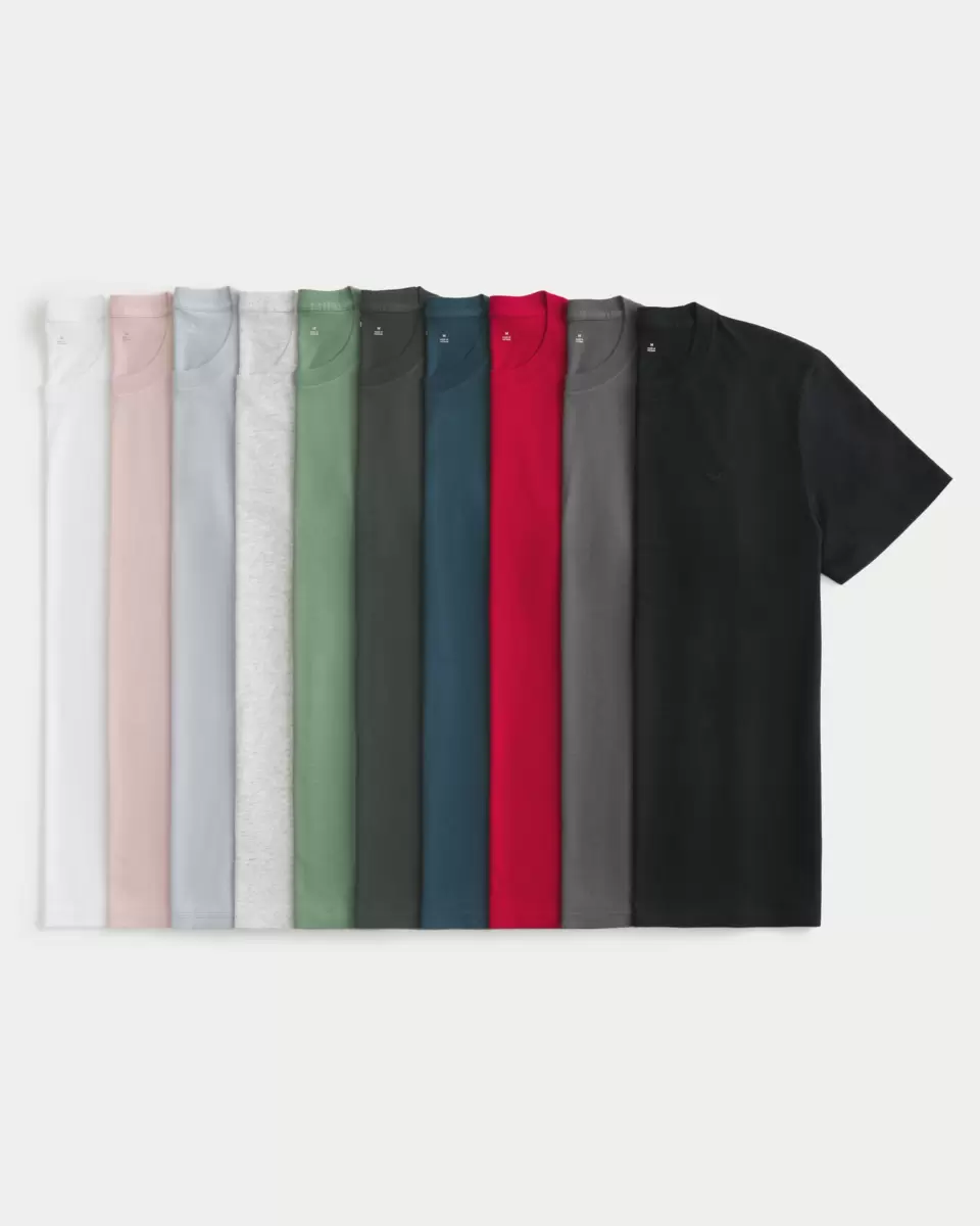 Includes 10 super soft 100% cotton t-shirts. Crew neckline, short sleeves, embroidered left chest logo icon. Slim Fit. Imported.