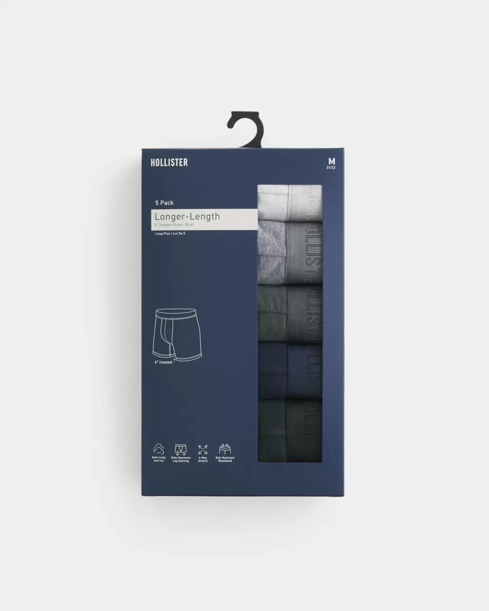 A 5-pack of our Longer-Length Boxer Briefs designed with comfortable, stretch knit fabric and contour pouch for support. Soft elastic waistband with logo detail Imported.