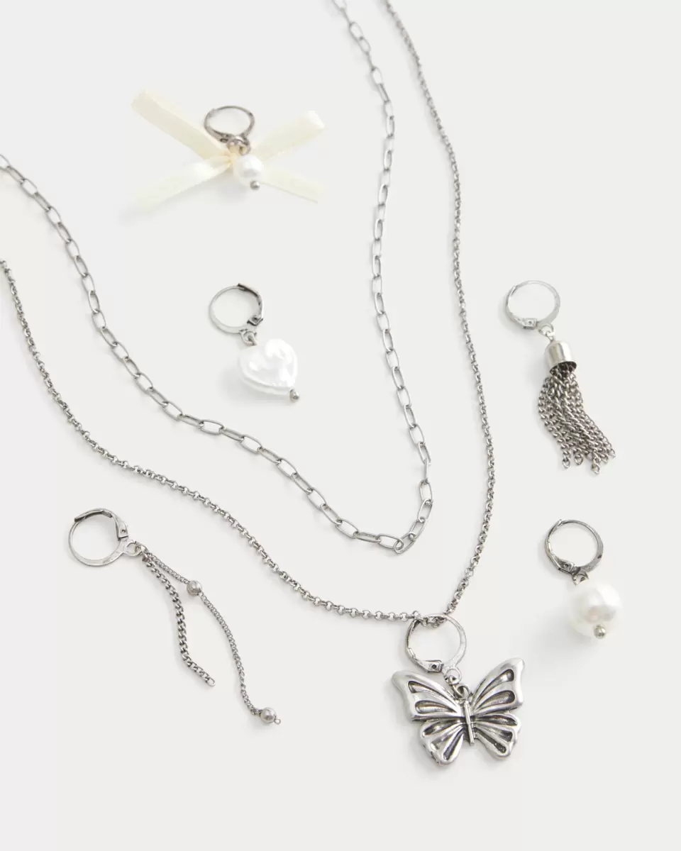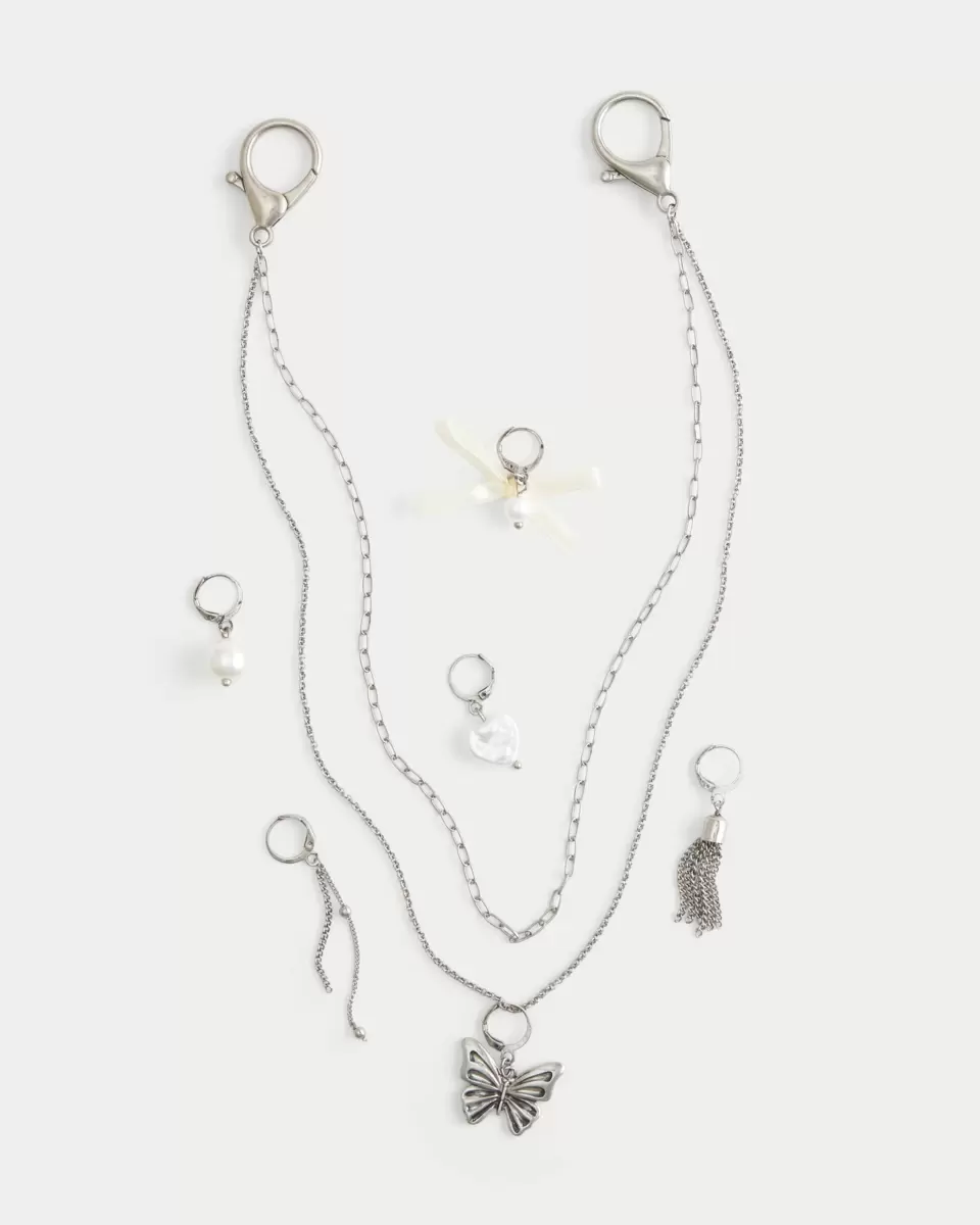 A set of cute metal charms with plastic pearl-style details. Imported.