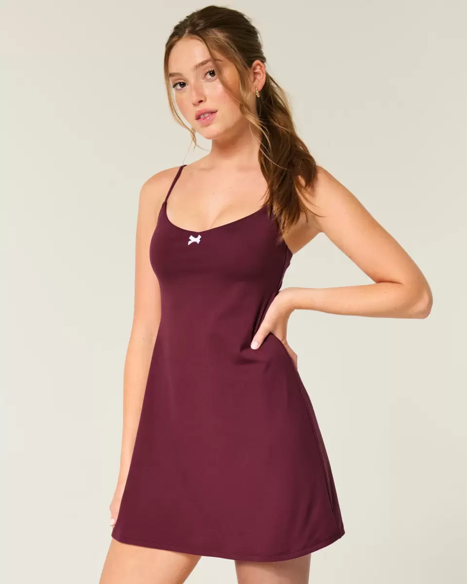 This cute and comfy gameday-style active dress features a bow detail at the center neckline. Adjustable straps. Imported.