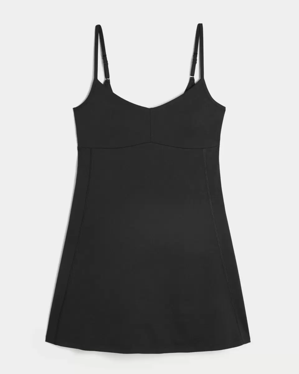 An ultra-comfortable active babydoll dress designed in our breathable, 4-way stretch, moisture-wicking Recharge fabric with a super soft, brushed feel. Built-in shorts and sports bra with pads, adjustable straps. Imported.