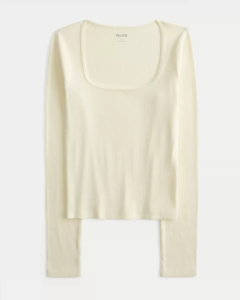 A cozy and super soft long-sleeve top with a square neckline. Imported.