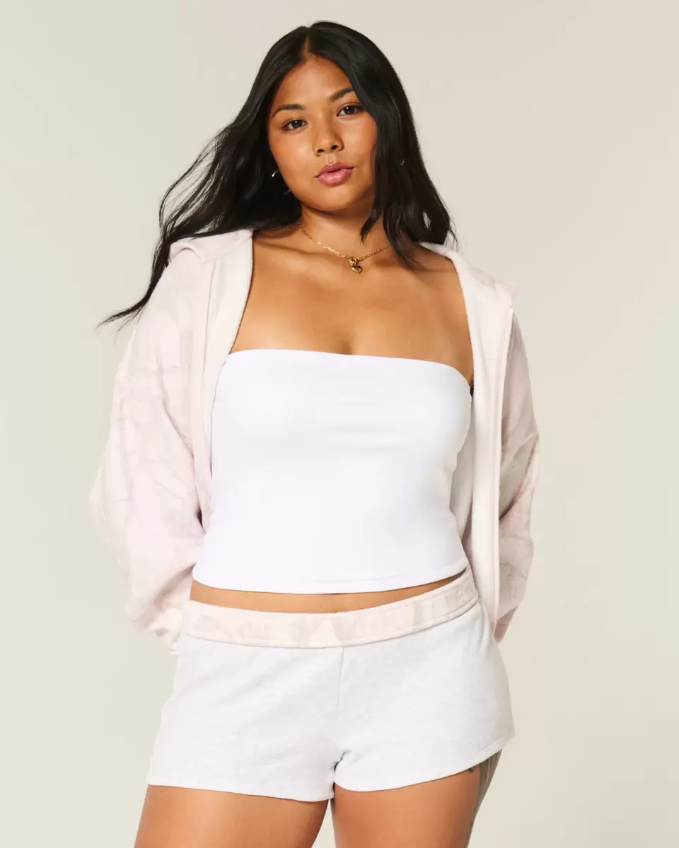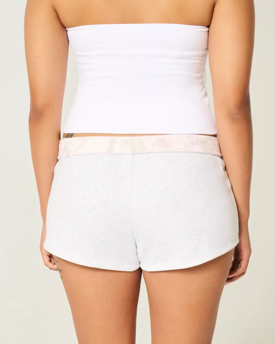 Super soft fleece mini shorts with a banded waist with interior camo pattern that looks cute folded over. Imported.