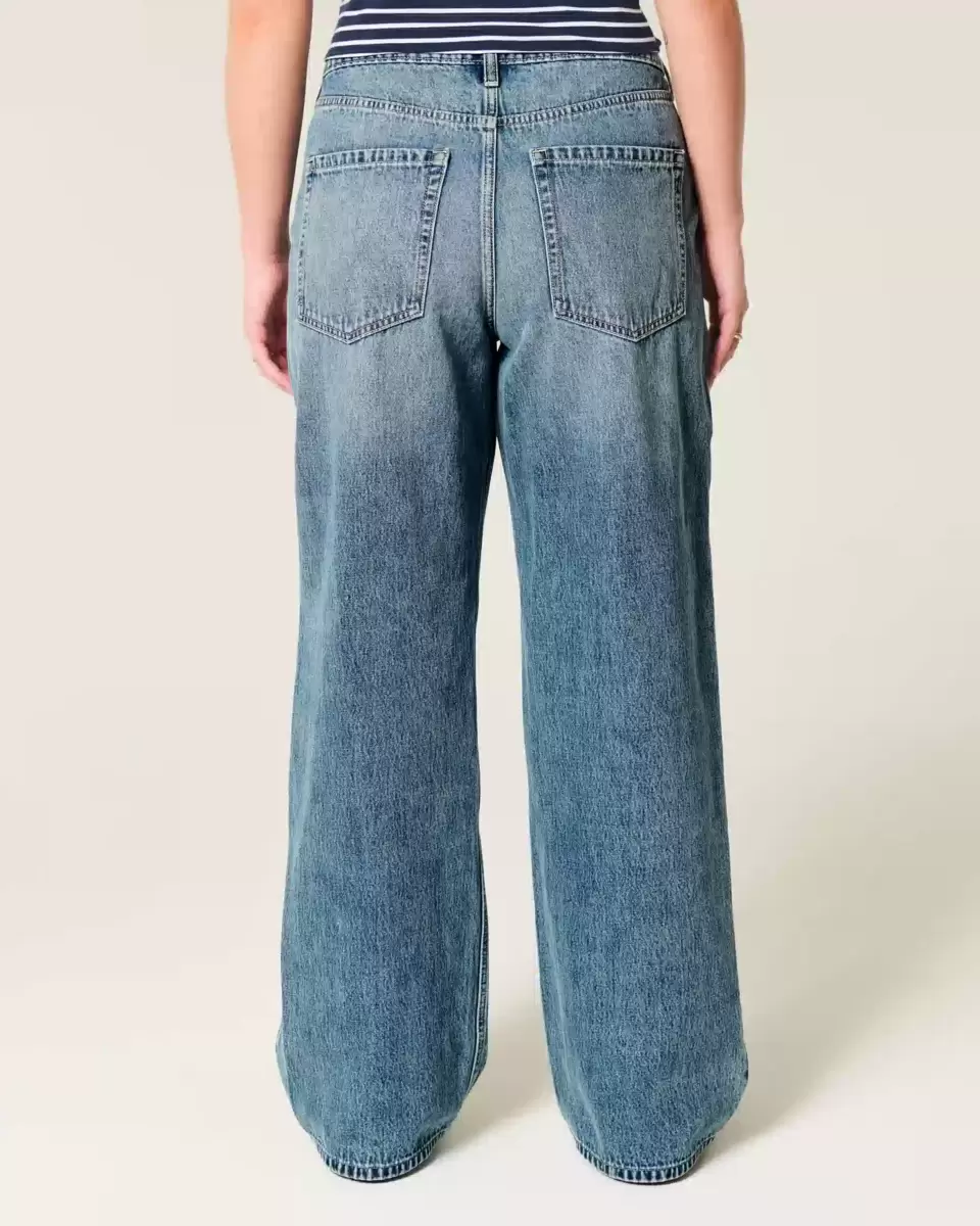 Comfortable denim jeans designed with a flattering high-rise waist and baggy leg. Fading, whiskering.
