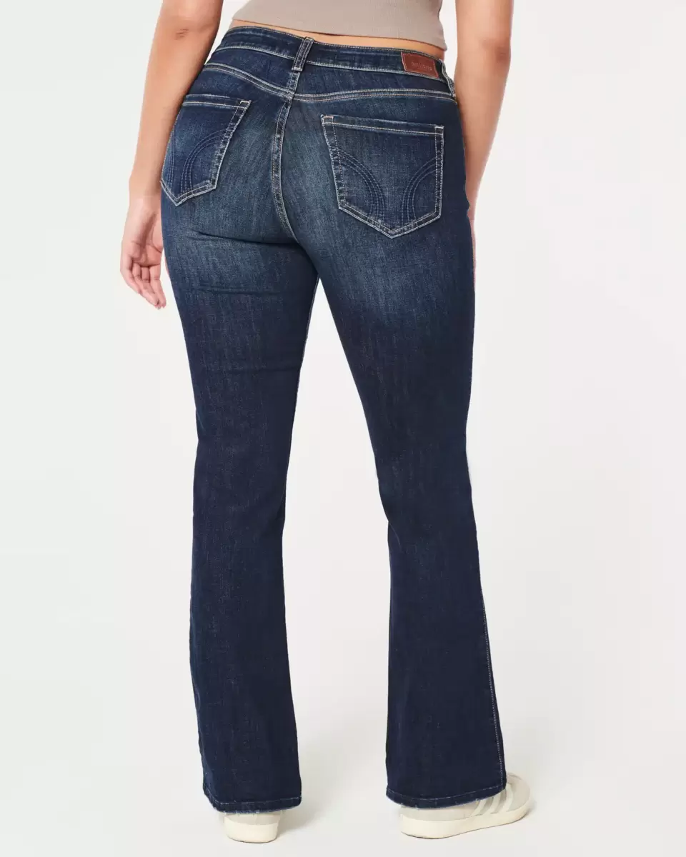 Slim through the thigh with a wider hem below the ankle, these dark wash boot jeans feature a flattering mid-rise waist, fading and whiskering. Made with our ultra-comfortable Soft Stretch denim. Imported.