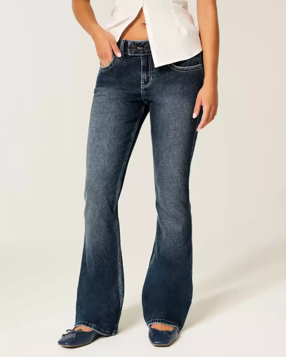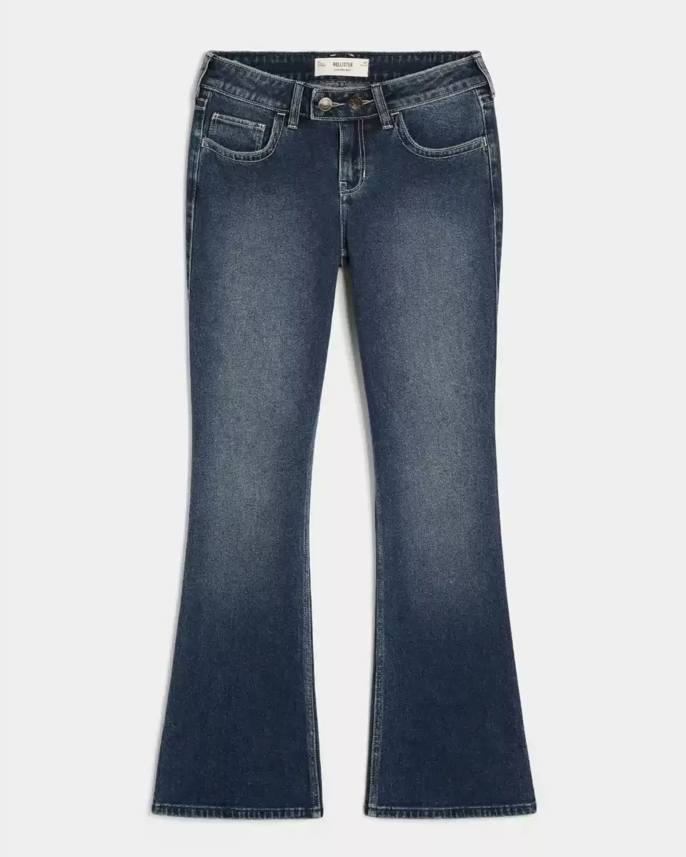 Comfortable jeans in Vintage Stretch denim, designed with a low-rise waist and boot hem. Dark wash with fading. Imported.