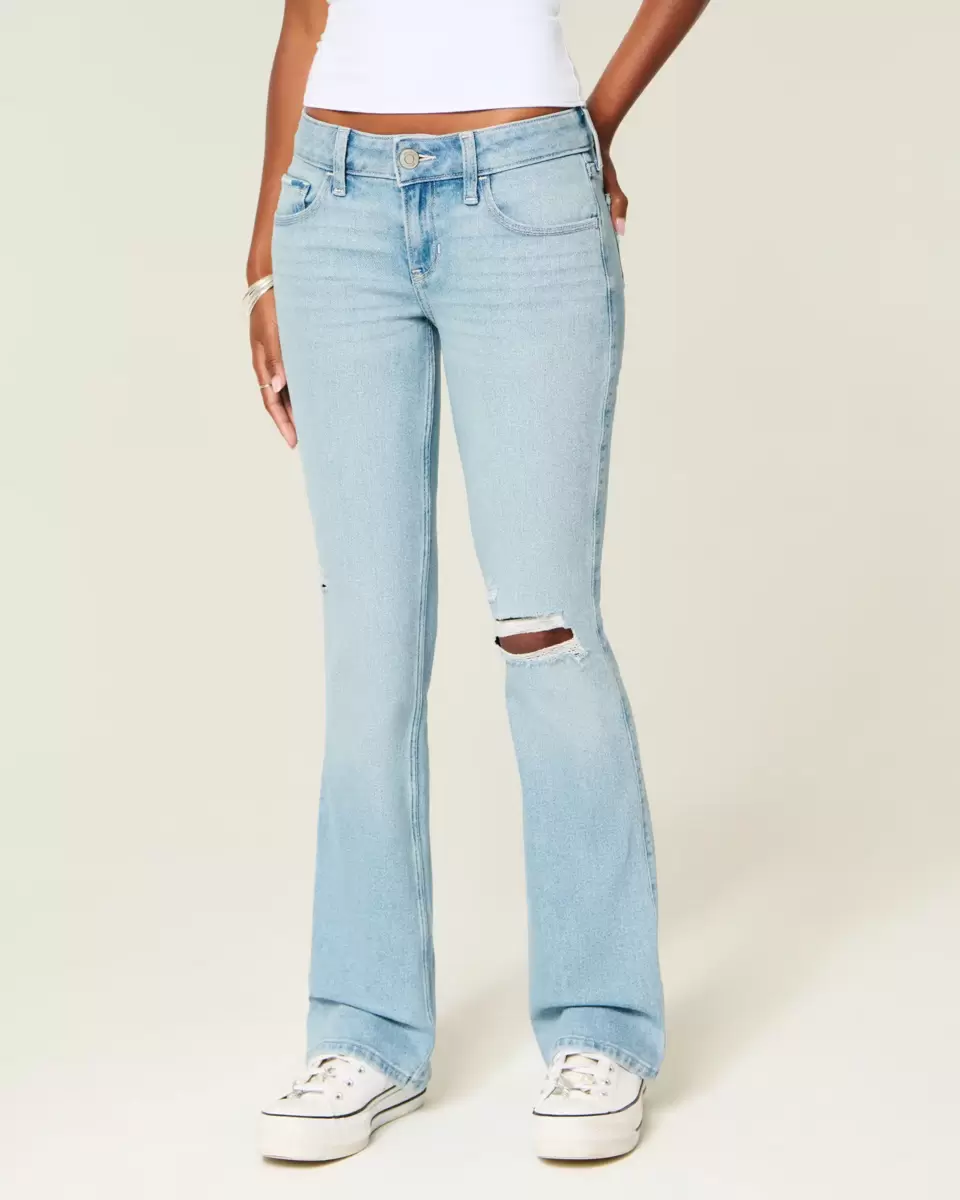 Low-Rise Ripped Light Wash Embroidered Bootcut Jeans