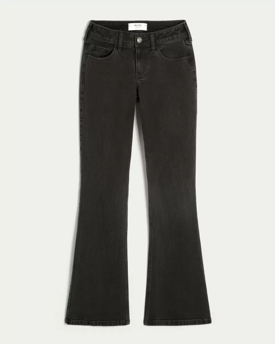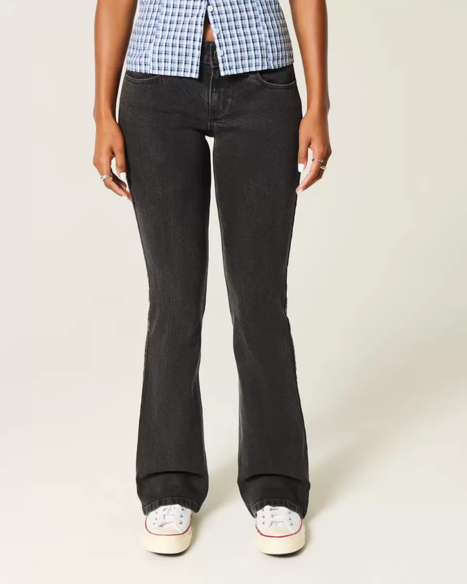 Comfortable denim jeans in washed black, designed with a flattering low-rise waist, slim leg and bootcut hem. Vintage Stretch denim. Imported.