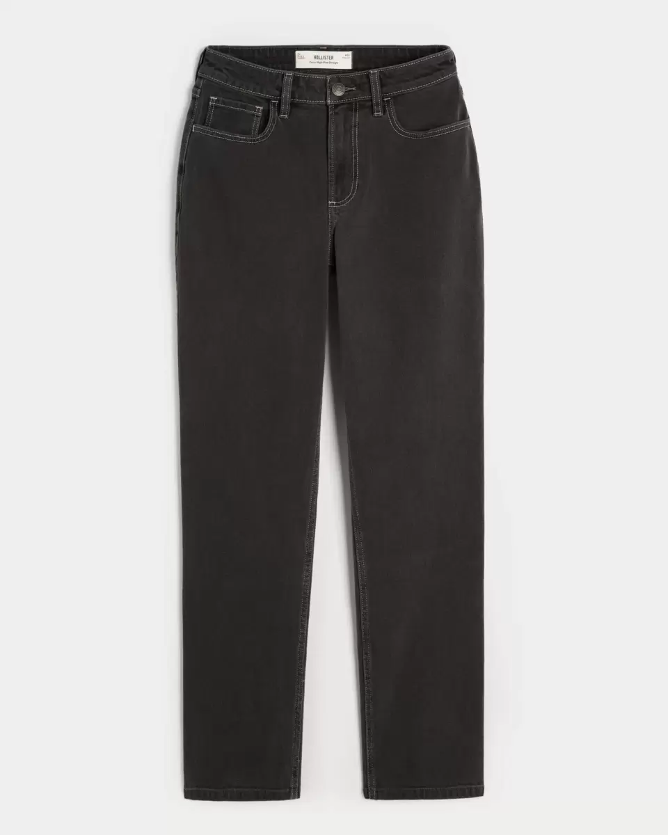 These comfy jeans are designed with a high-rise waist and straight leg. Washed black. Imported.
