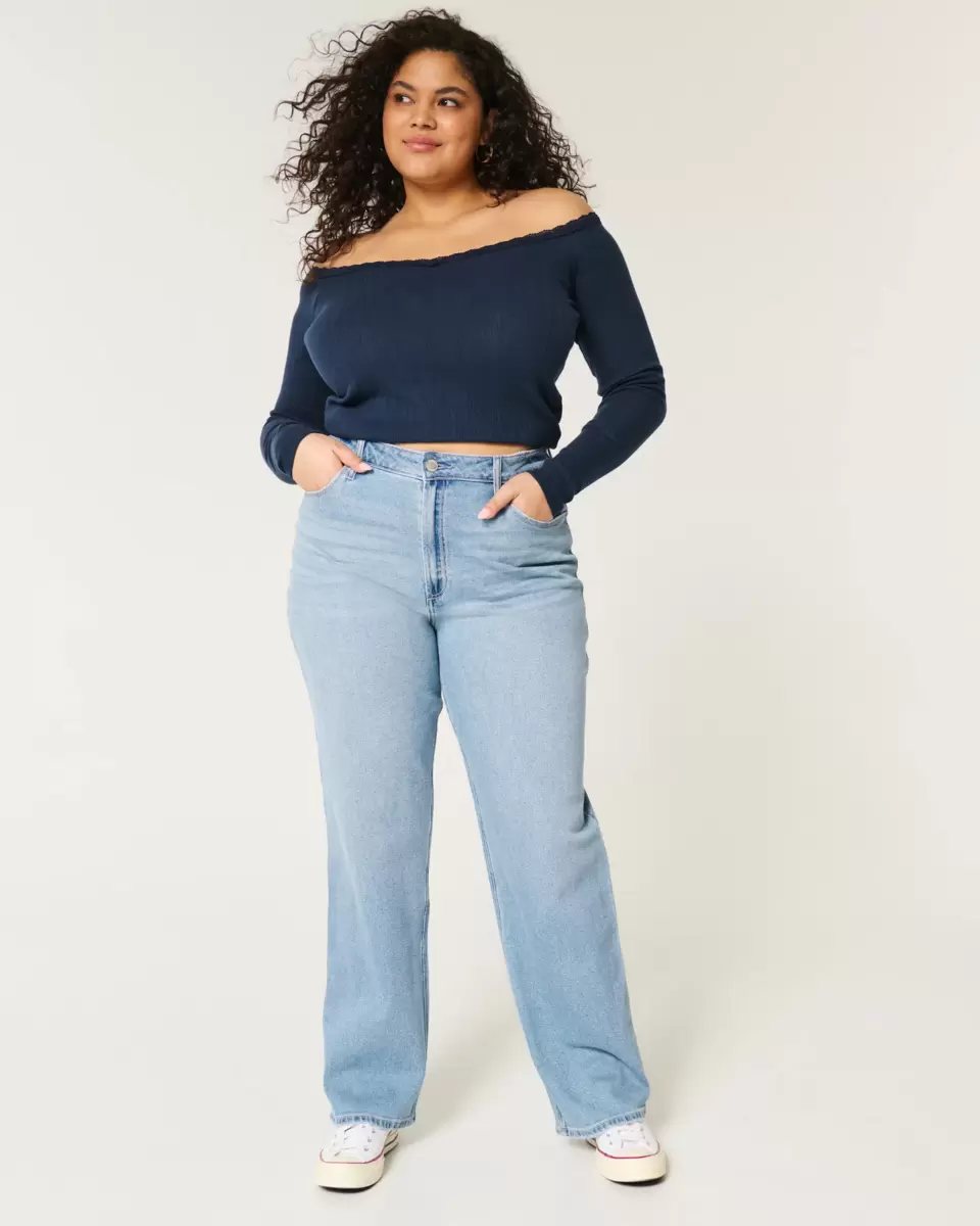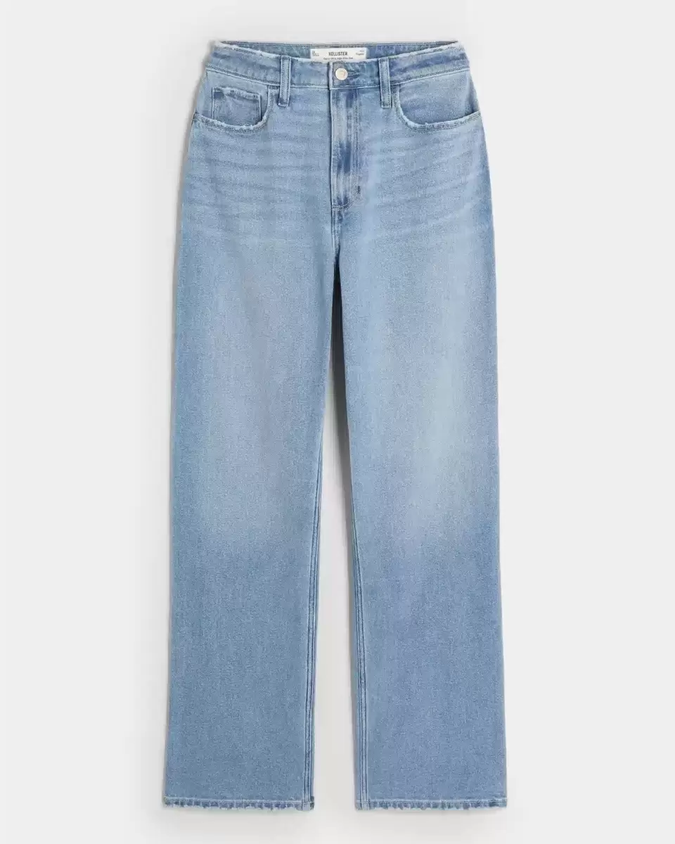 Designed with an ultra high-rise waist and relaxed leg. Vintage Stretch denim in a medium wash with fading and whiskering. Imported.