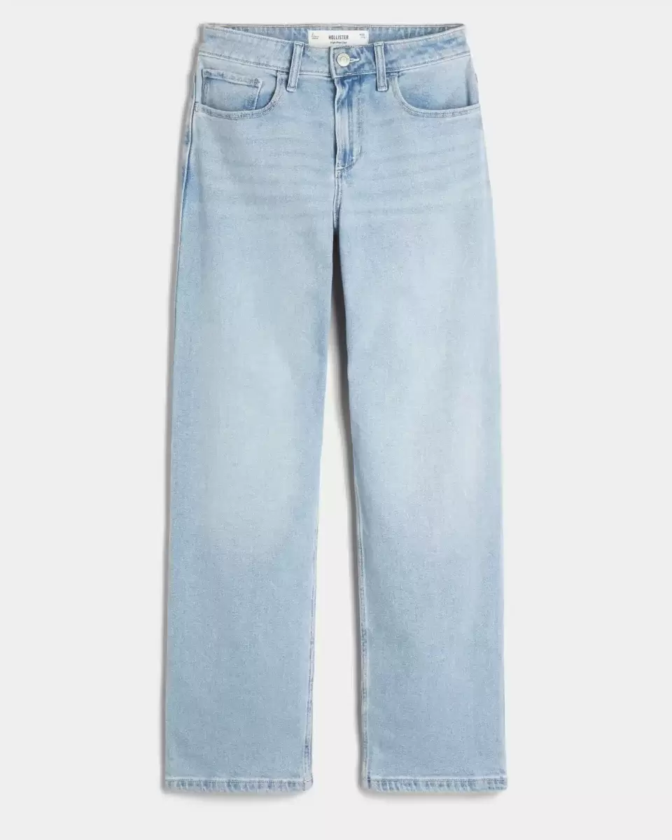 Cute and comfortable jeans in a light wash, designed with a flattering high-rise waist and relaxed leg. Fading and whiskering, Vintage Stretch denim. Imported.