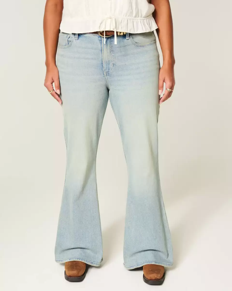 Comfortable jeans in Vintage Stretch denim, designed with a flattering high-rise waist and flared leg. Star-stitched details at the back pockets, light wash with fading and whiskering. Imported.