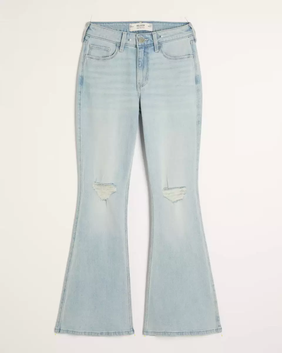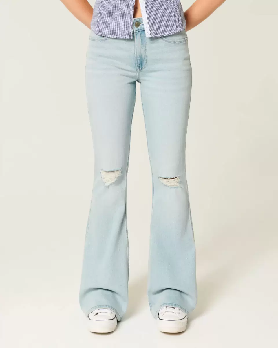 Comfortable jeans made with Vintage Stretch denim, designed with a flattering high-rise waist, slim leg and flared hem. Light wash with fading, whiskering and ripped details. Imported.