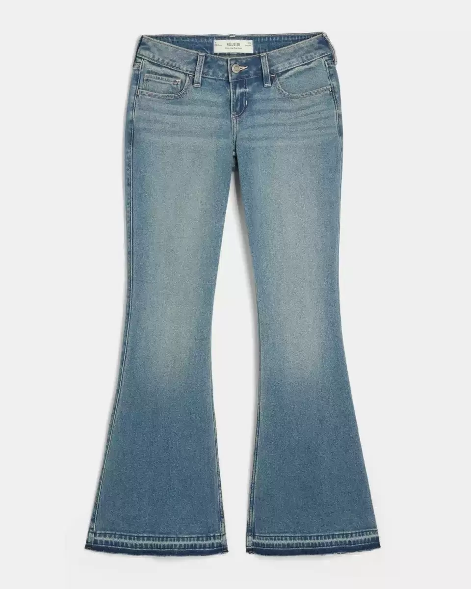 Comfortable jeans in Vintage Stretch denim, designed with an ultra low-rise waist and flared hem. Medium wash. Imported.