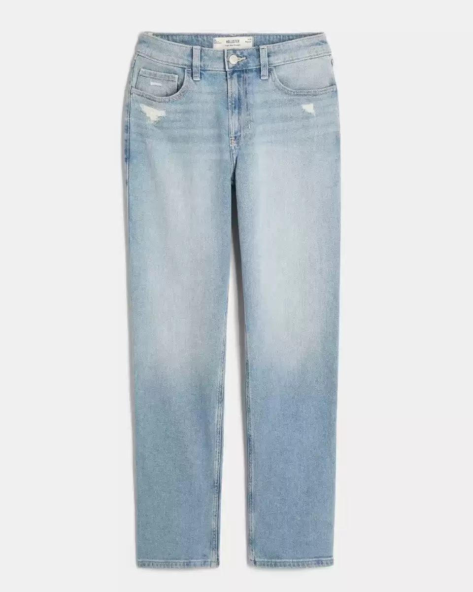 Comfortable jeans made with Vintage Stretch denim in a light wash, designed with a flattering high-rise waist and straight leg. Fading, whiskering, distressed details. Imported.