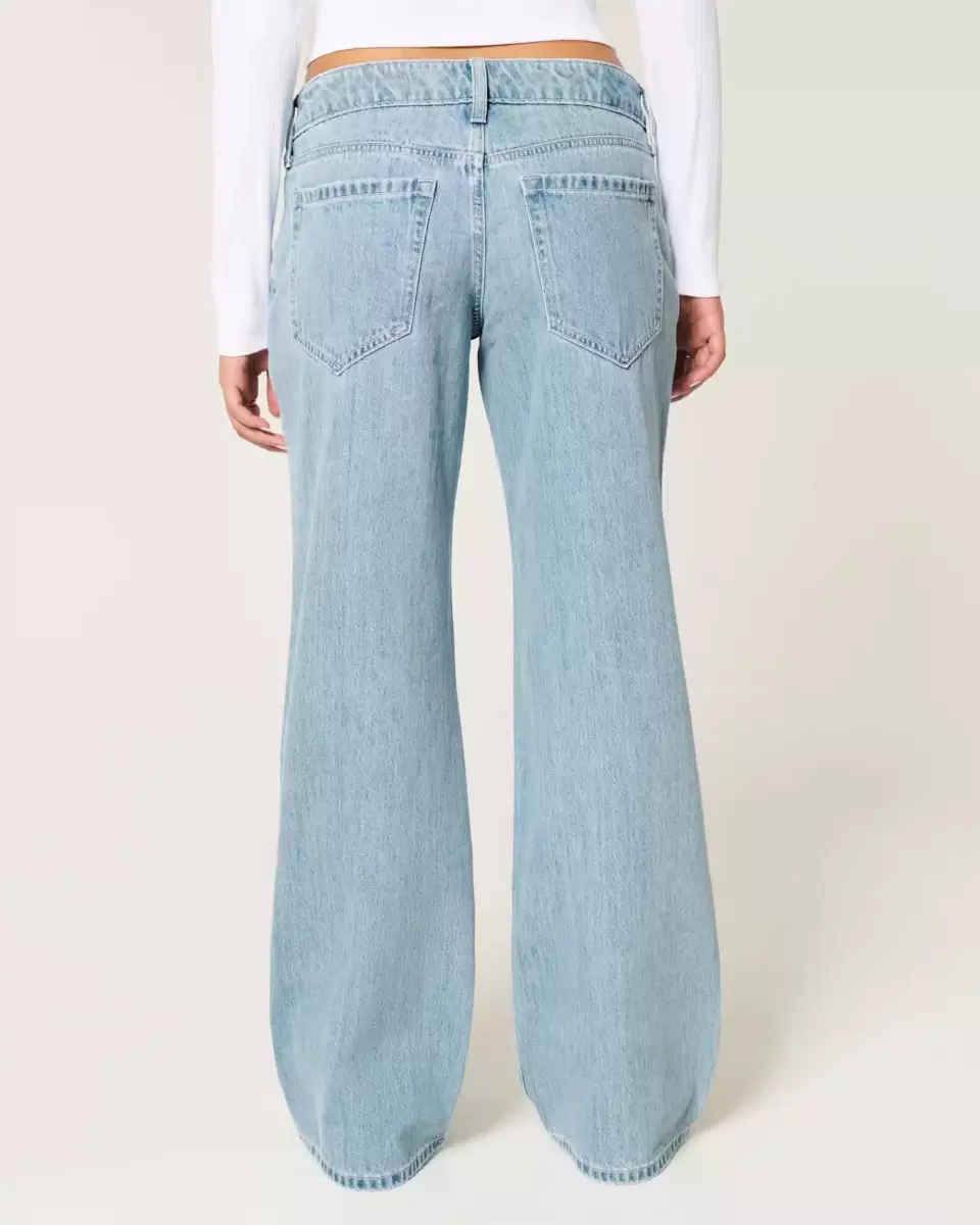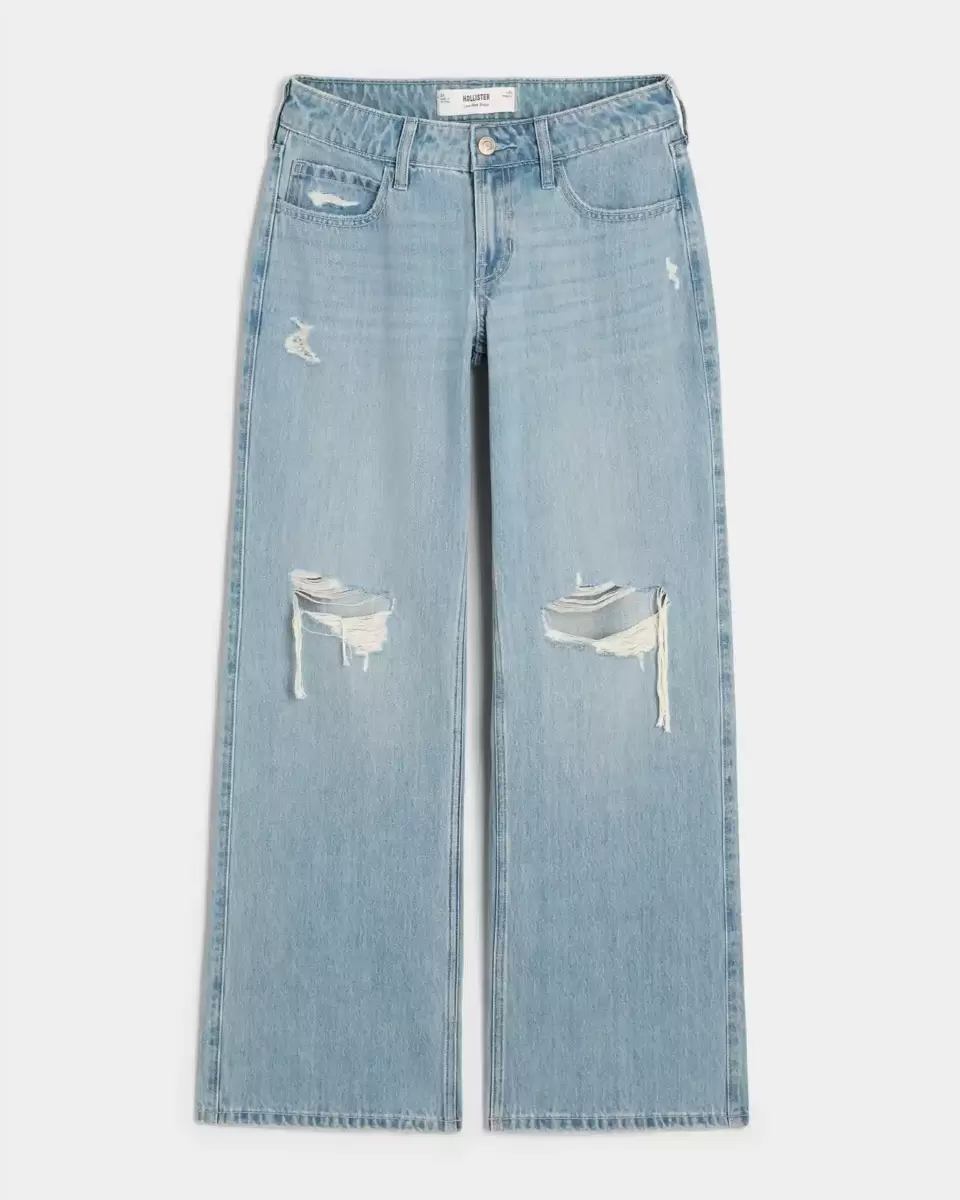 Ultra-comfortable jeans designed with a low-rise waist and baggy leg. Light wash denim with ripped details. Imported.