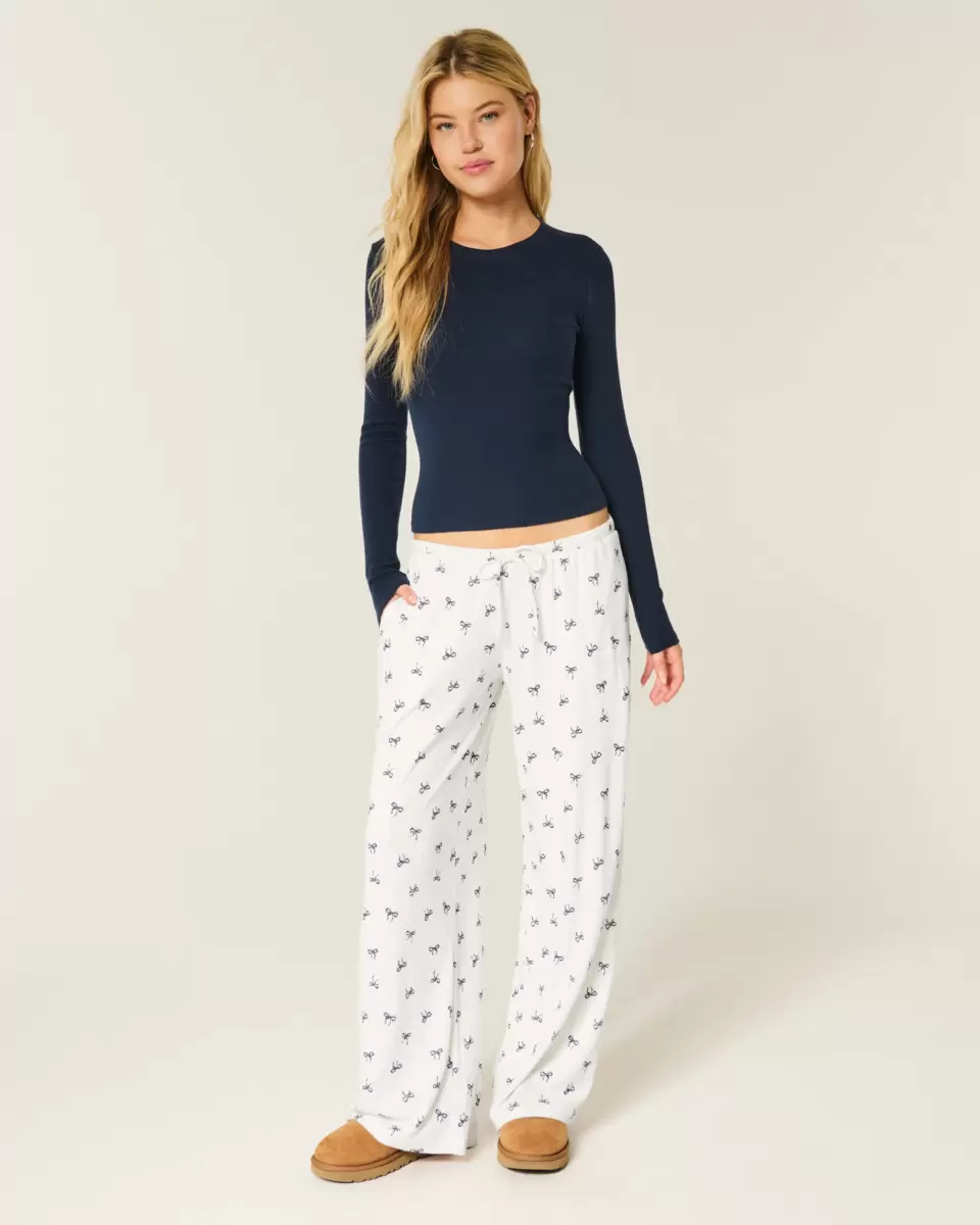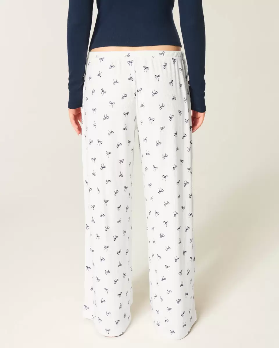 Super cute and comfortable wide-leg pants made with cozy ribbed fabric. Drawstring waist, pockets. Imported.