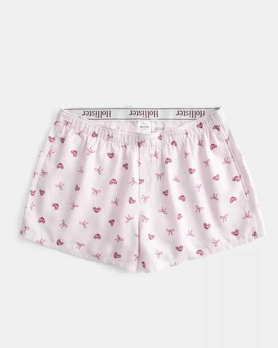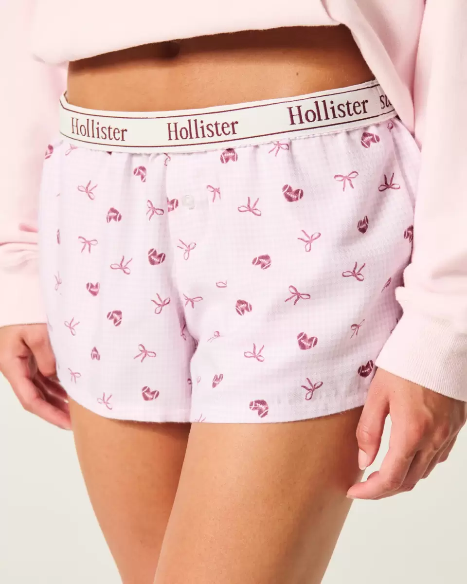 Super soft flannel boxer shorts with an all-over pattern and soft waistband with interior logo details. Pockets. Imported.