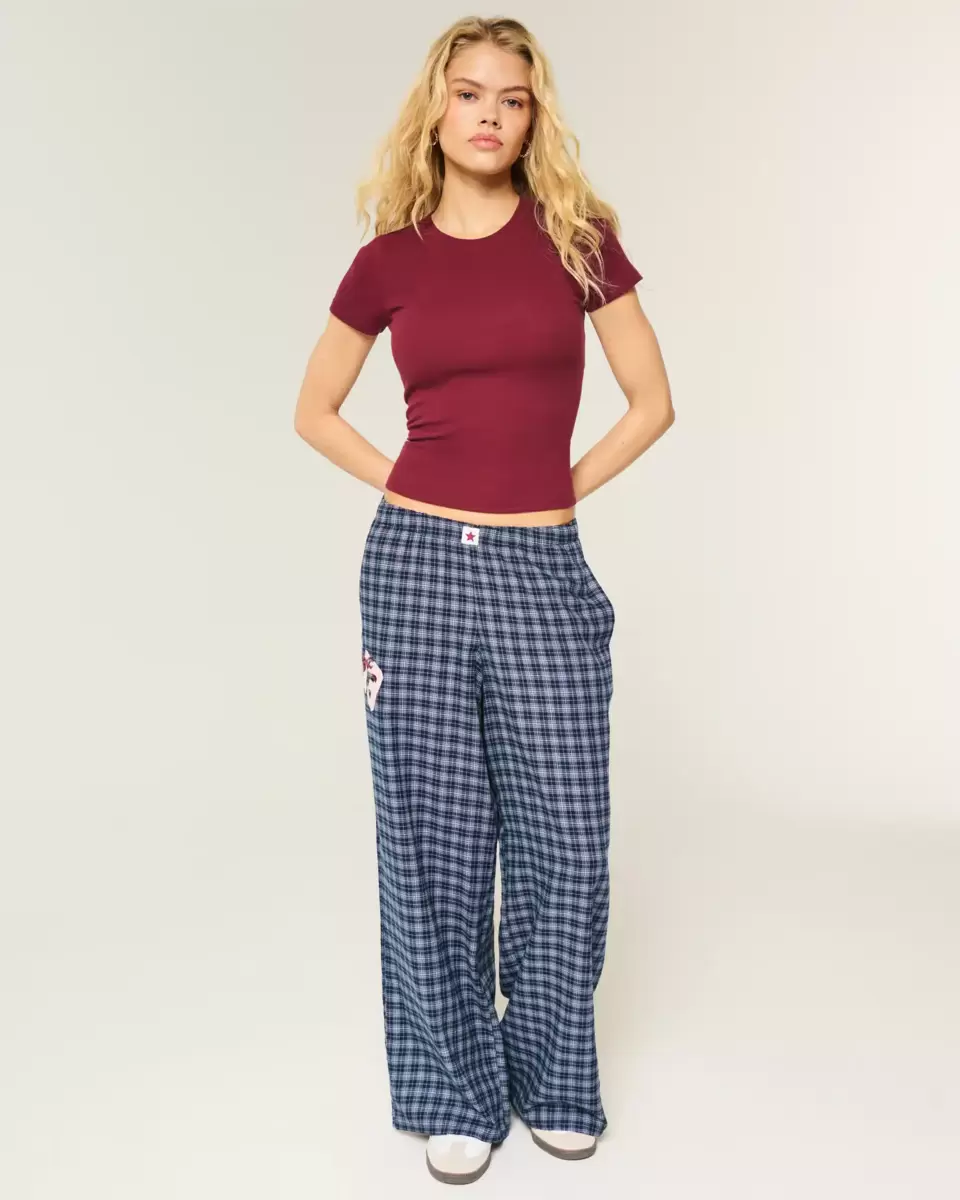 Super soft flannel pants designed with a baggy leg and banded adjustable-rise waist. Number graphic applique with embroidered bow detail, star tab detail at center waist, pockets. Imported.