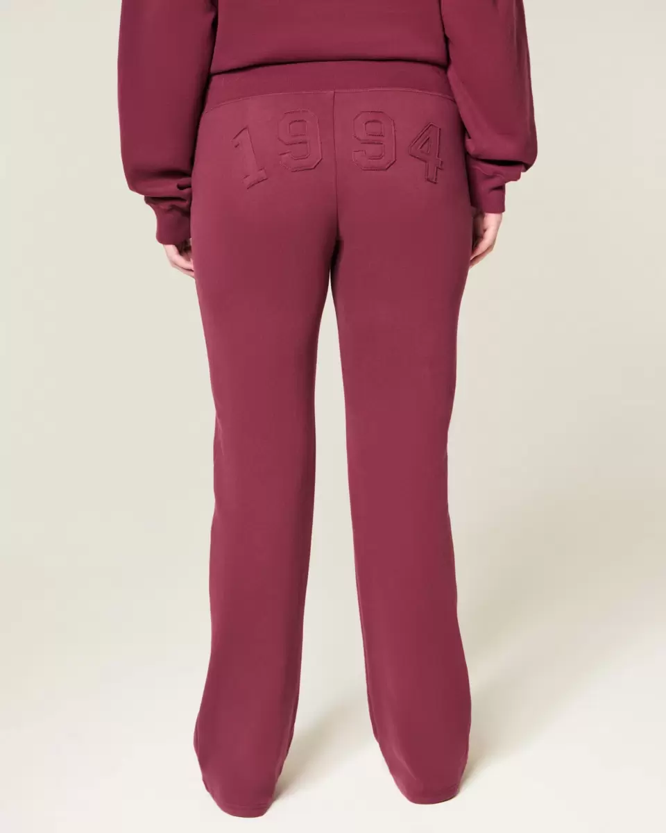 Super soft fleece sweatpants designed with a slim leg and boot hem. Low-rise drawstring waist, 1994 graphic applique at back.