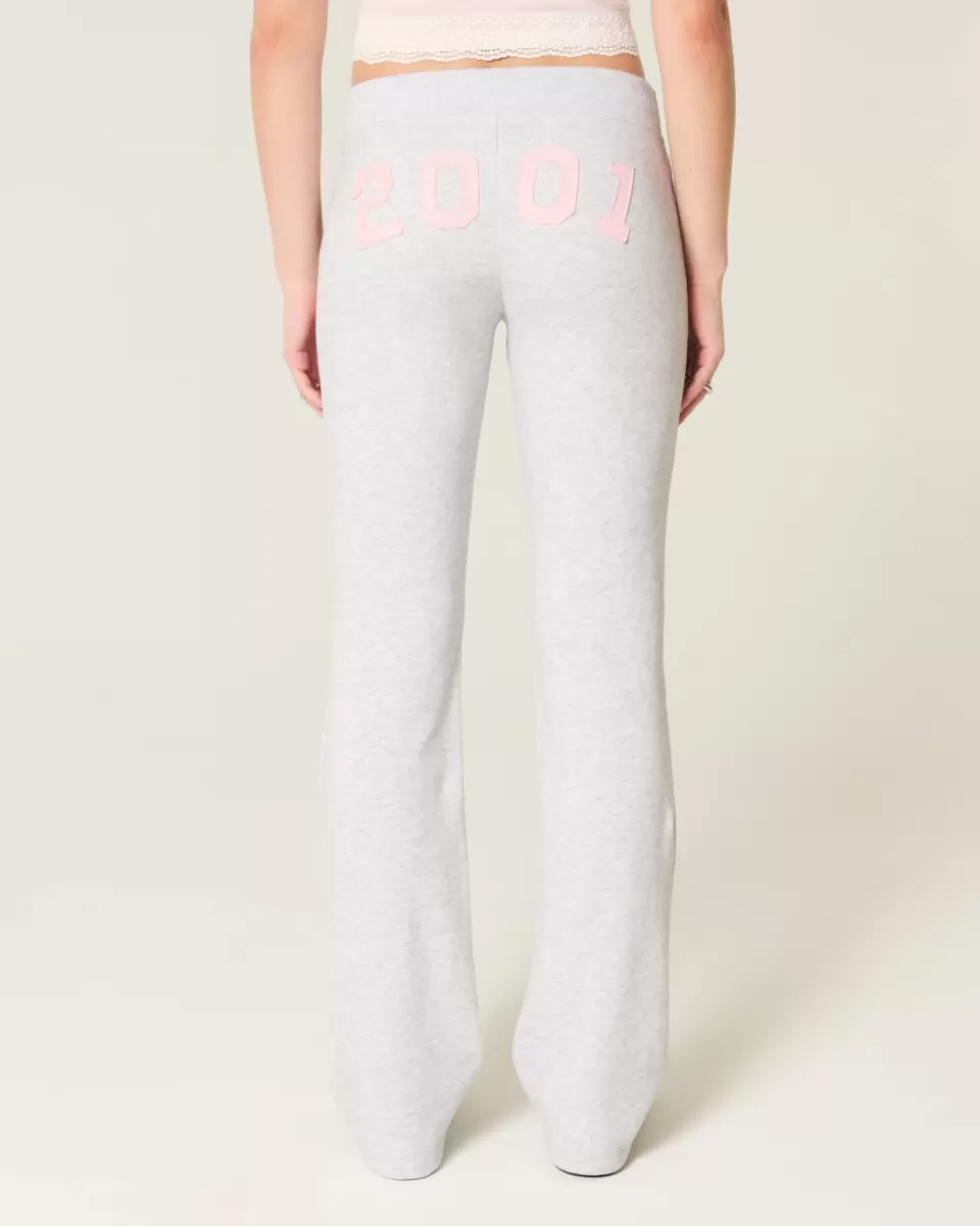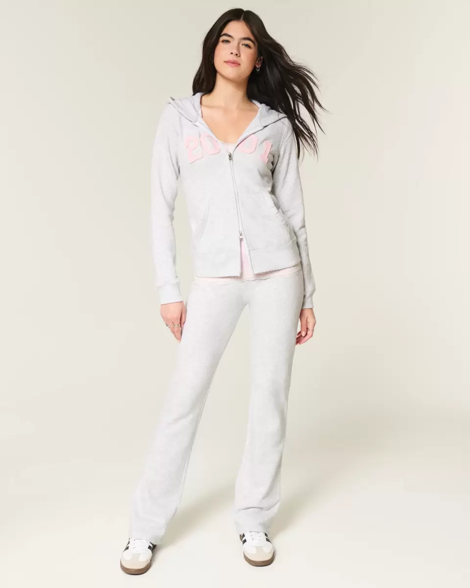 Super soft fleece sweatpants designed with a slim leg and boot hem. Low-rise drawstring waist, 2001 graphic applique at back. Imported.