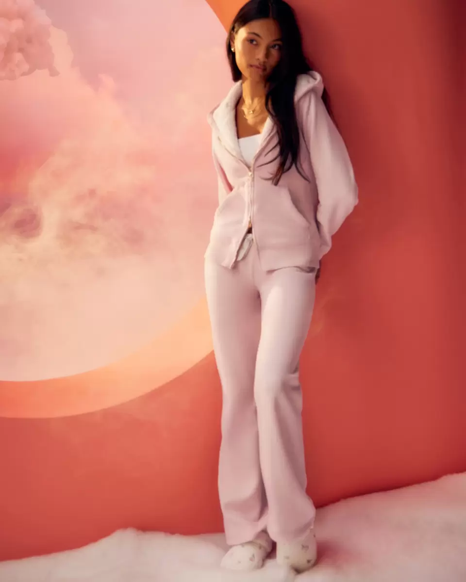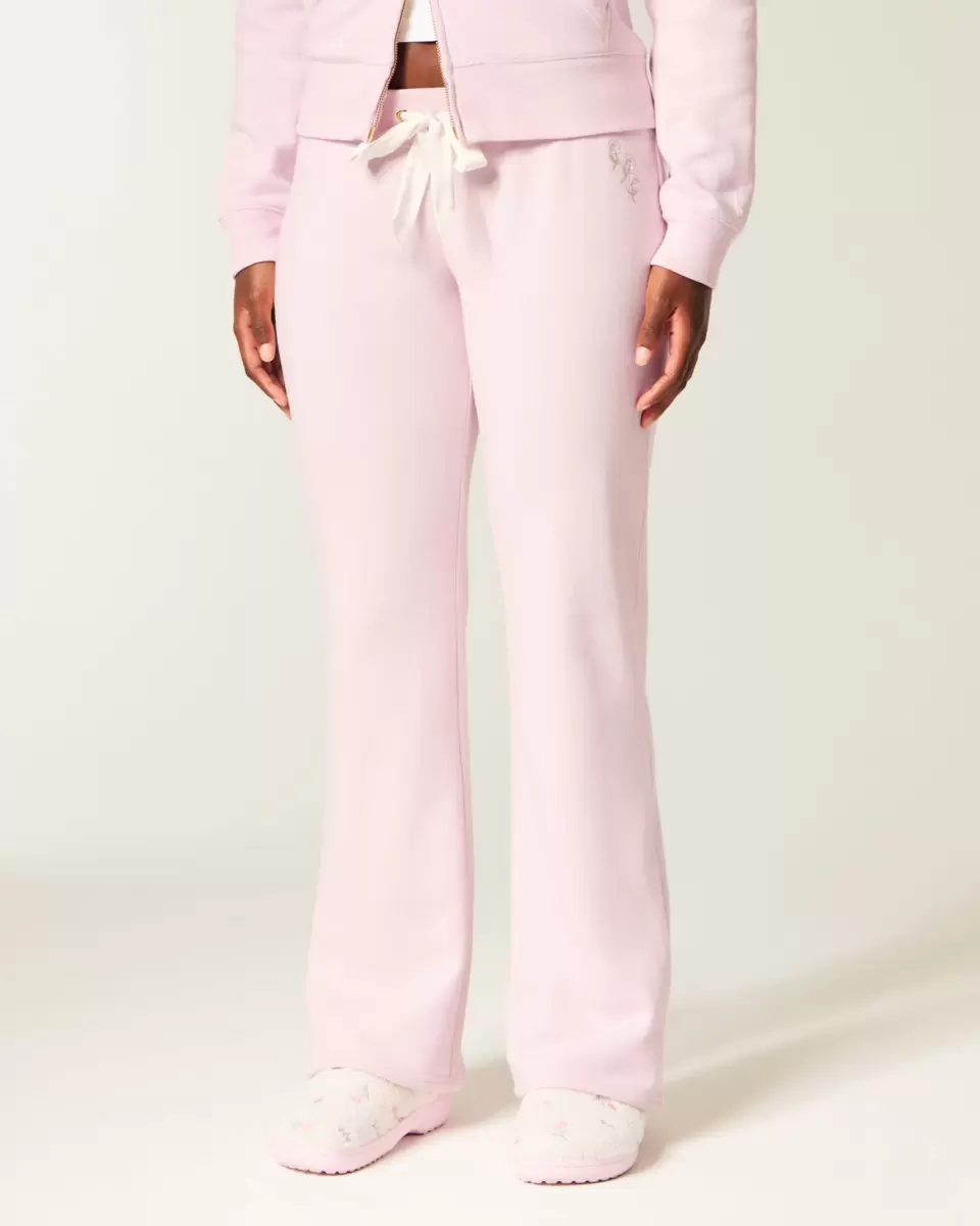 Hollister x Crocs limited-edition Dream Drop sweatpants in super soft fleece fabric, designed with a slim leg and boot hem. Drawstring waistband, pretty floral embroidery. Imported.