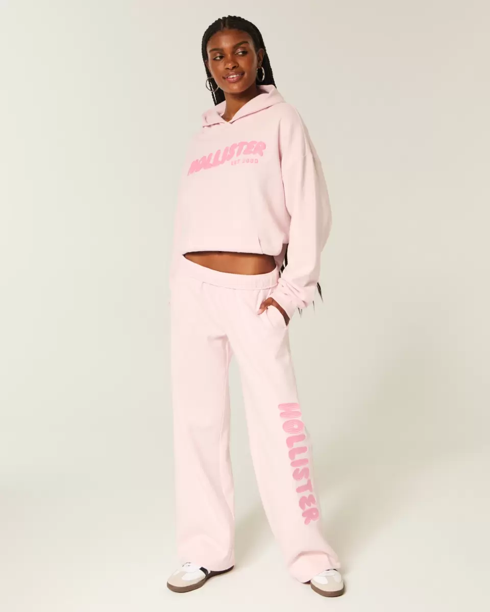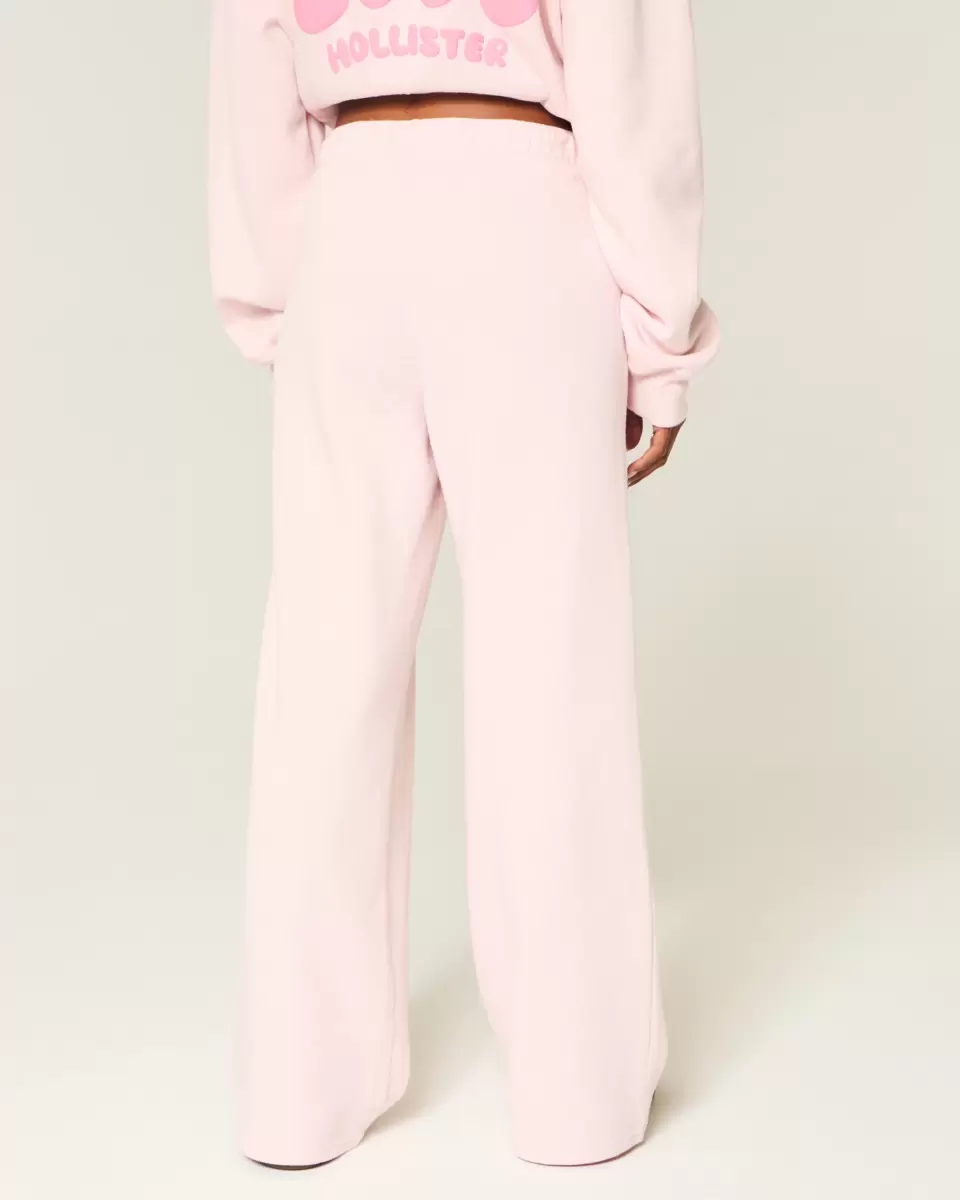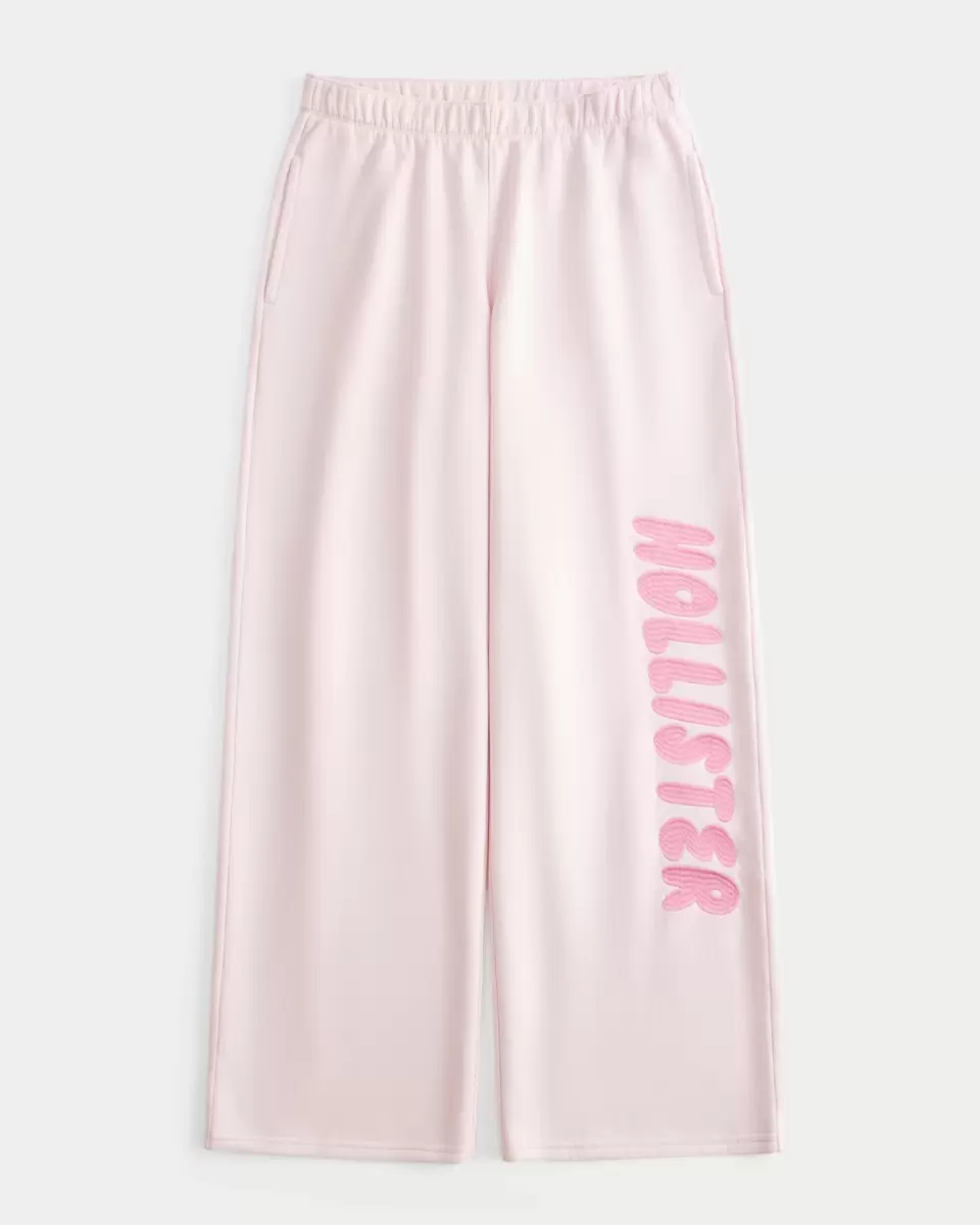 Super soft fleece sweatpants designed with a wide leg and banded mid-rise waist. Embroidered logo graphic, pockets. Imported.