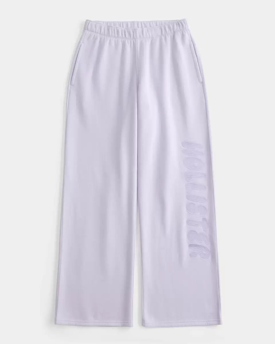 Super soft fleece sweatpants designed with a wide leg and banded mid-rise waist. Embroidered logo graphic, pockets.