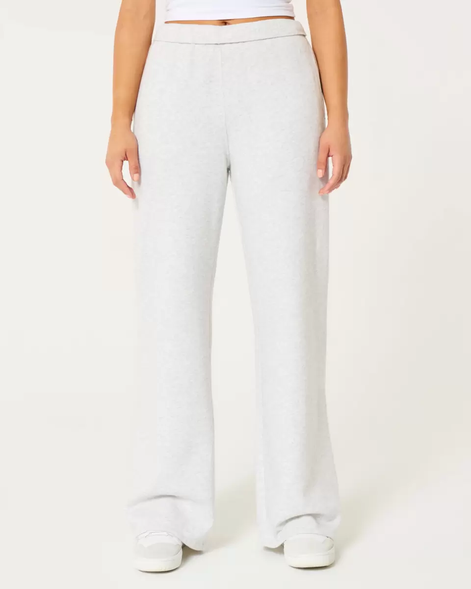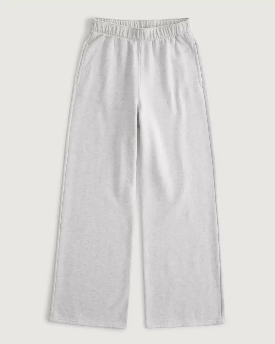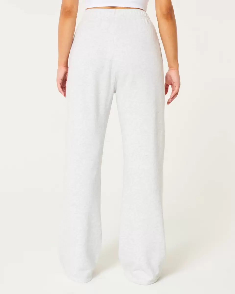Made with super soft fleece fabric, these cozy wide-leg pants feature a banded waist, pockets and an embroidered logo icon near the waist. Imported.