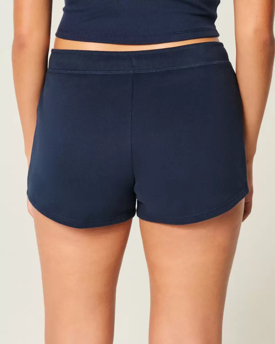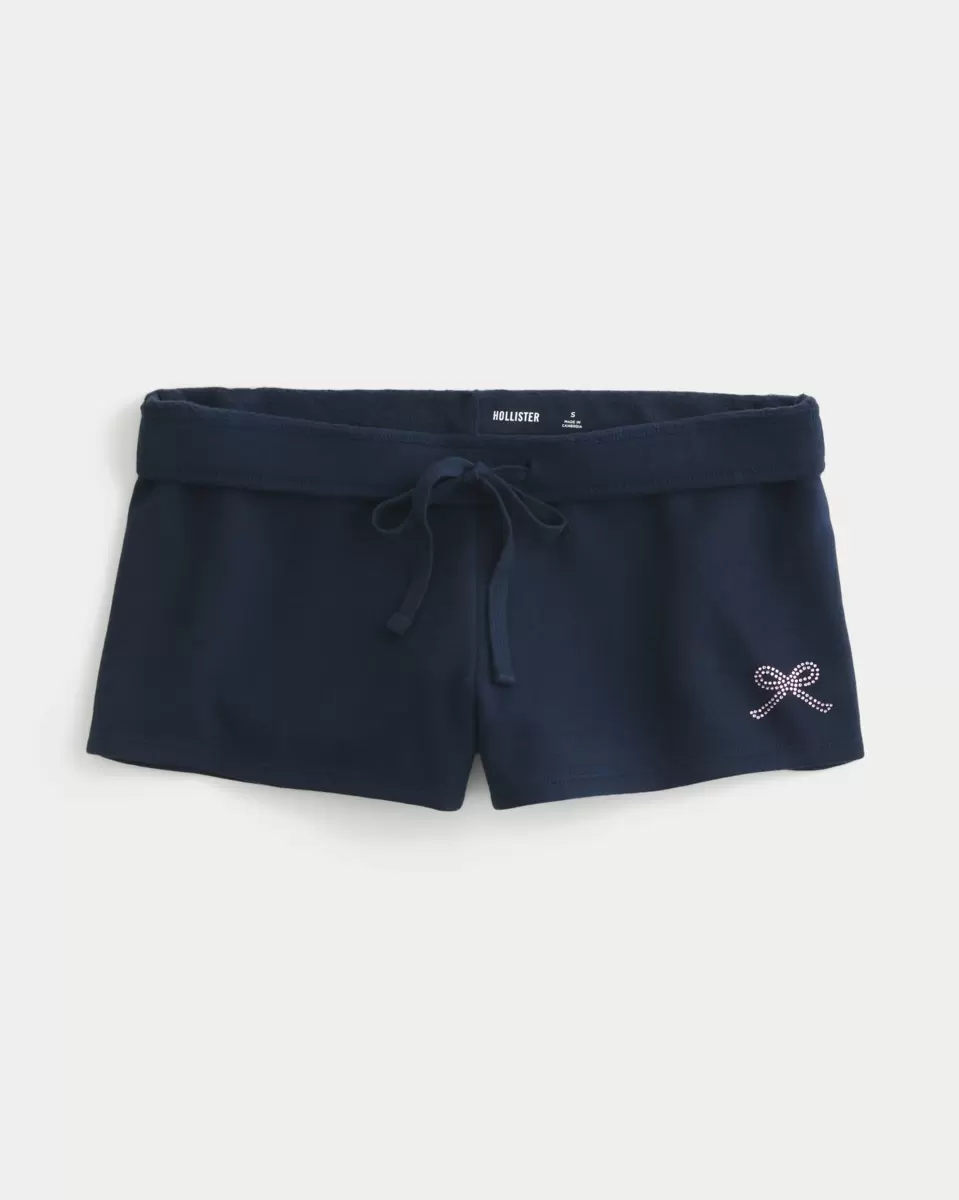 Cute and super soft fleece mini shorts with a cute rhinestone bow graphic. Soft mid-rise drawstring waist can be folded over to low-rise.